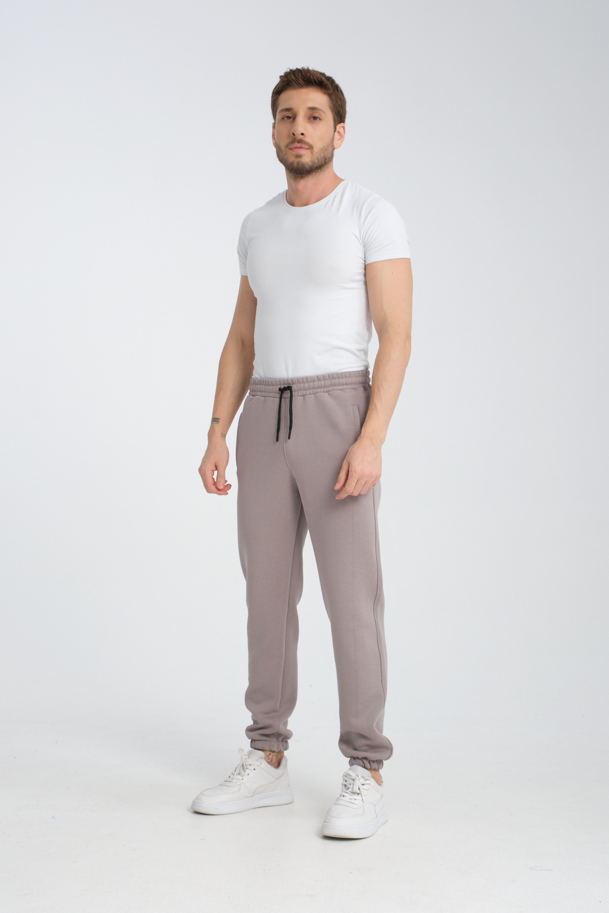شلوار راحتی مردانه خاکستری سه نخ، مناسب برای زمستان، با لبه کشسان