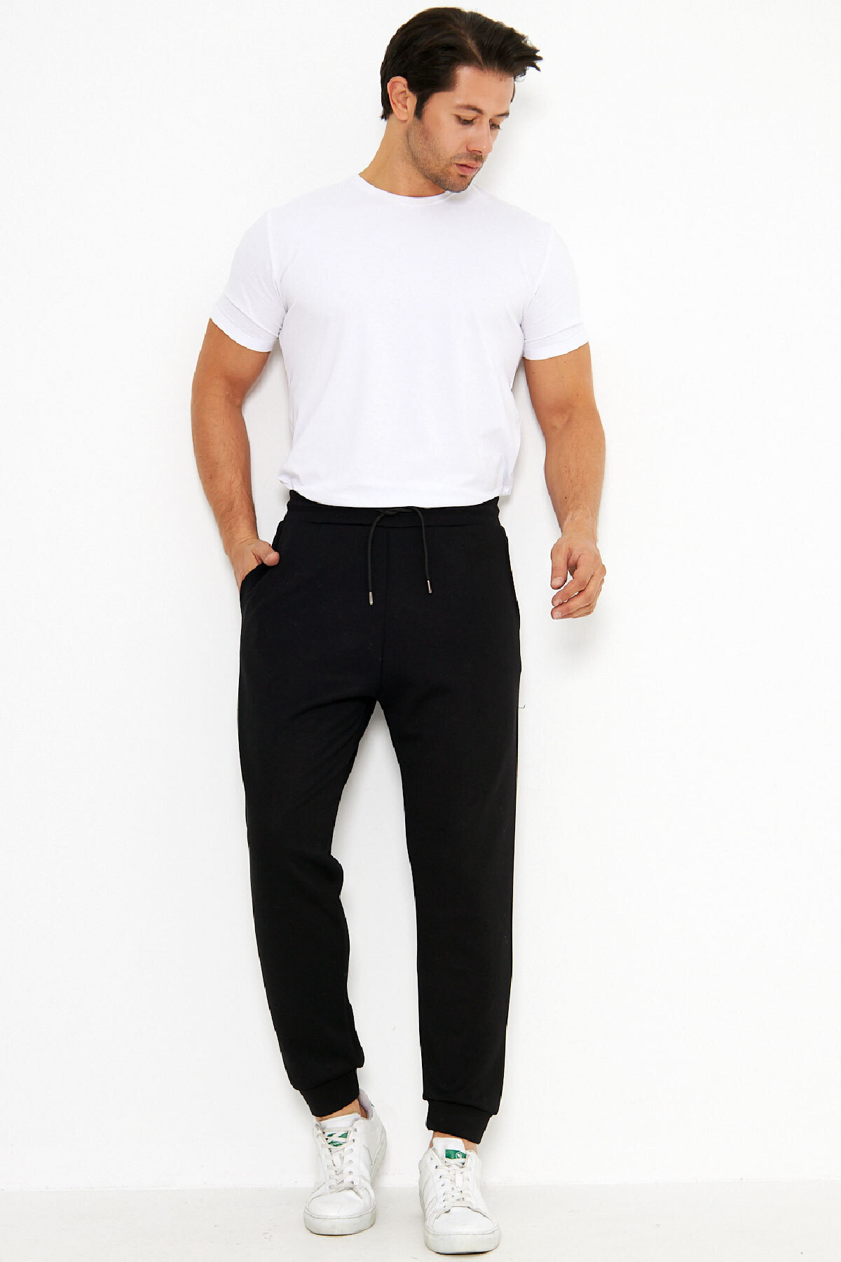 شلوار ورزشی مردانه مدل غواصی EDY0020S، جیب دار مشکی، کمر کشی، کمر بلند، مدال