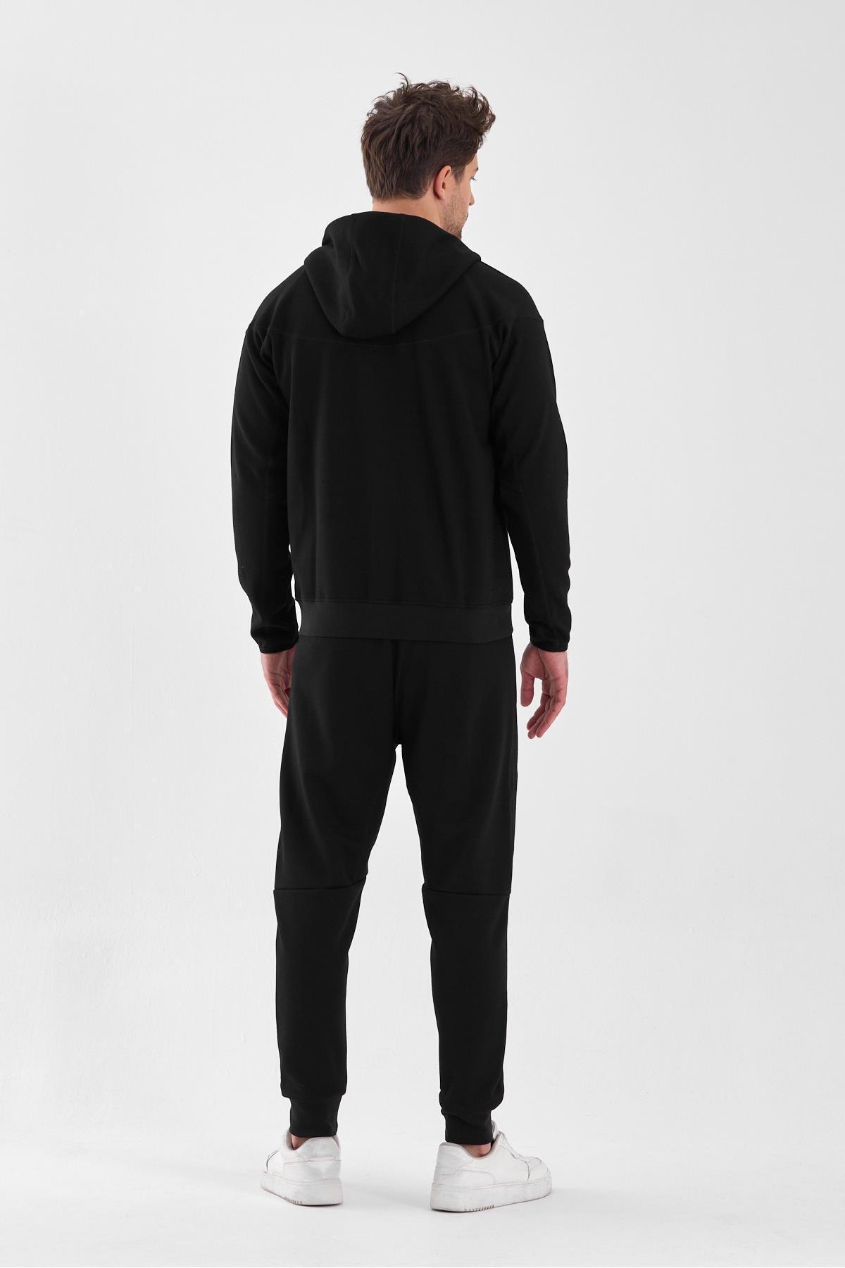 ست گرمکن مردانه مشکی جیب‌دار، کلاه‌دار، زیپ‌دار و کش‌دار – ۷۷۶۳