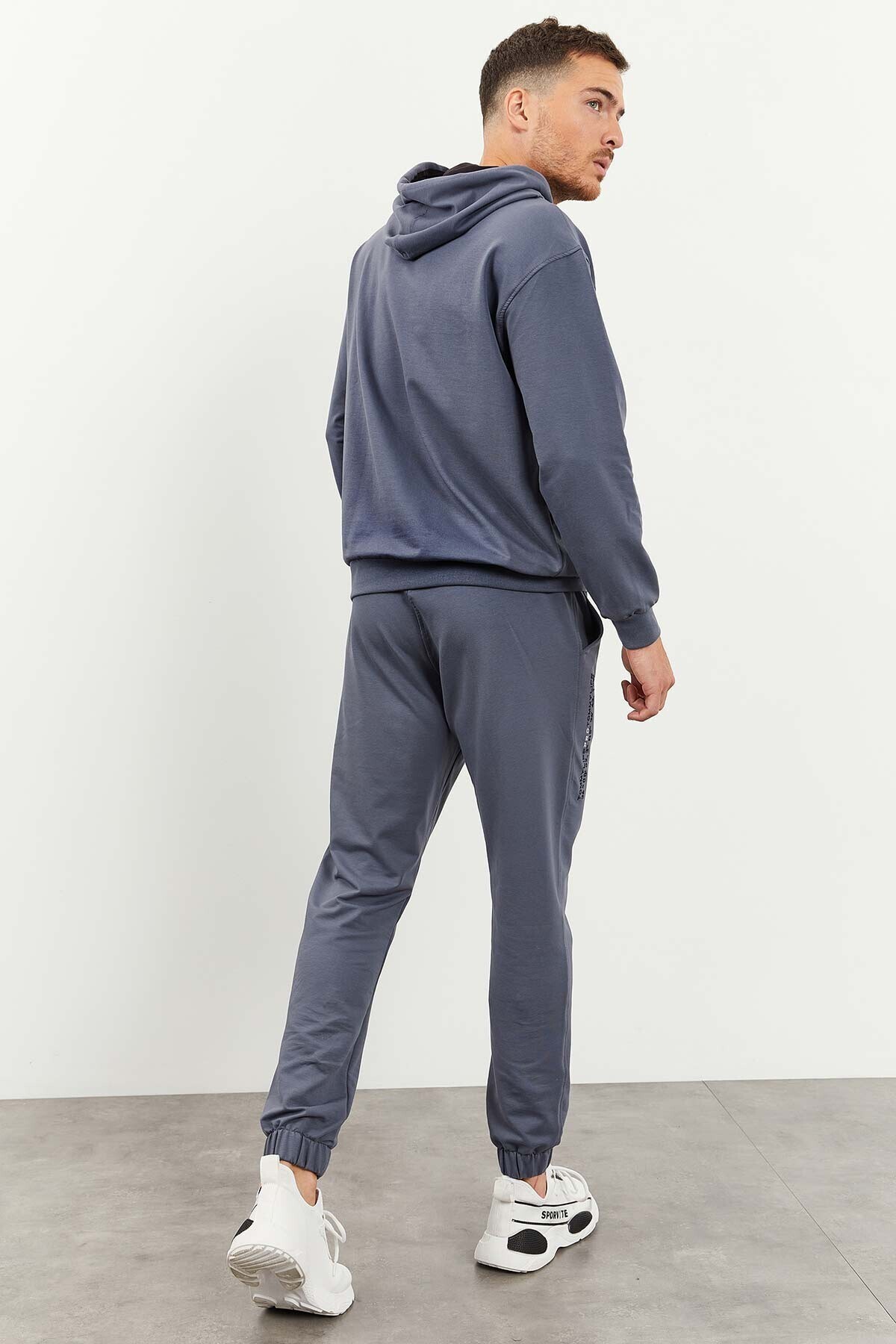 ست لباس ورزشی مردانه سایز بزرگ با هود بنزینی، جیب کانگورویی و لبه کشسان – 85117