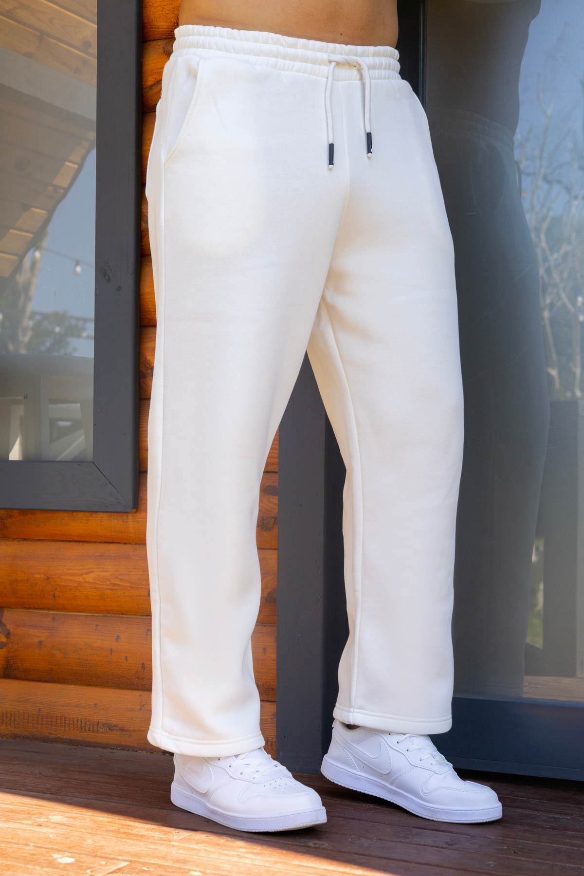 شلوار ورزشی گشاد سه نخ مردانه سفید پشمی
