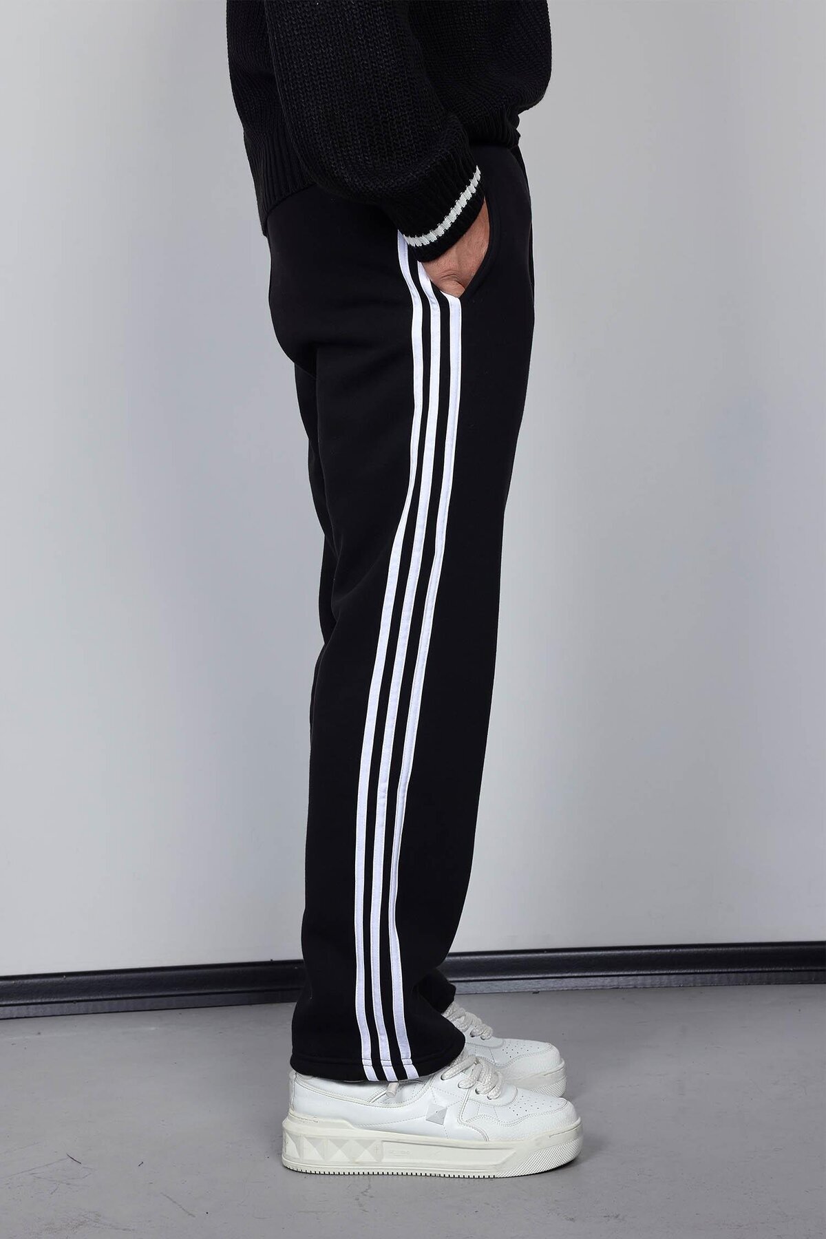 شلوار ورزشی مردانه طرح راه راه کناری گشاد مشکی
