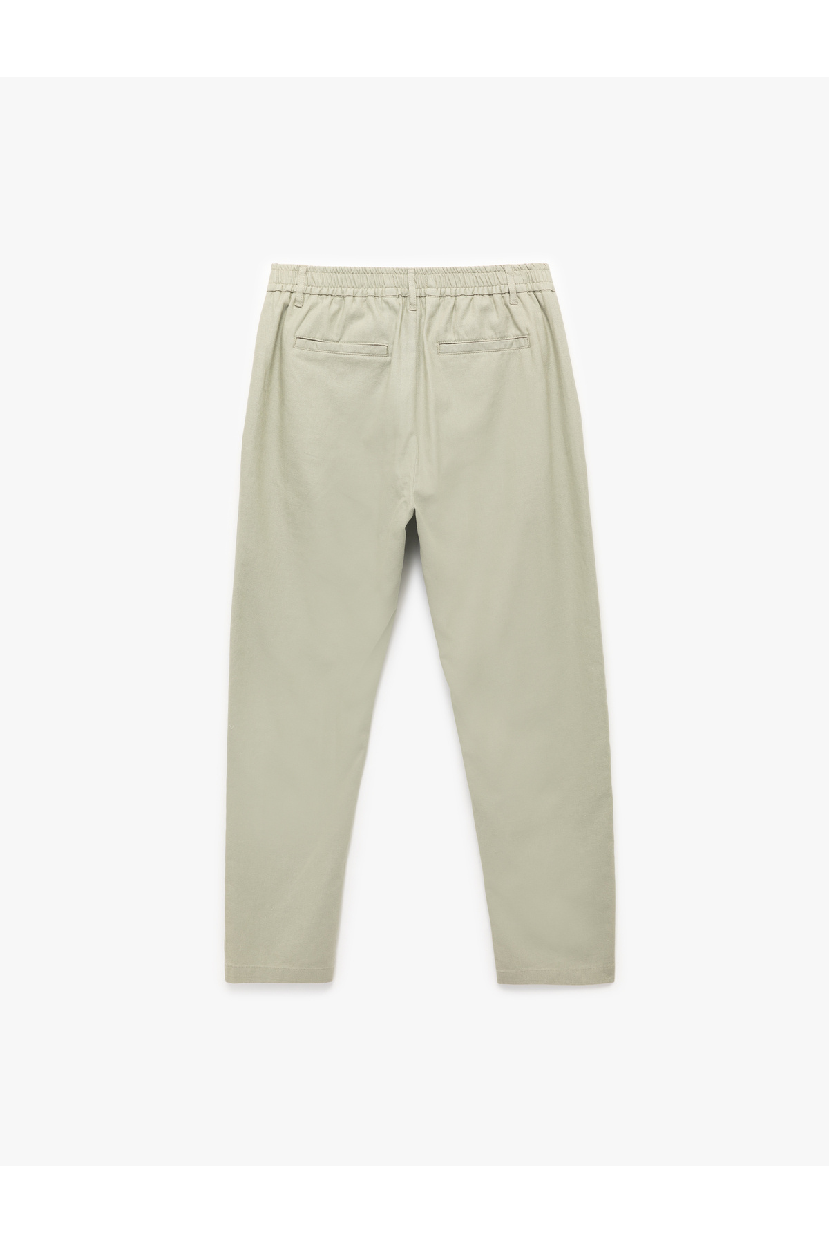 شلوار کتان نخی ترکیبی با کمر کشی، دکمهدار و دارای جیب.