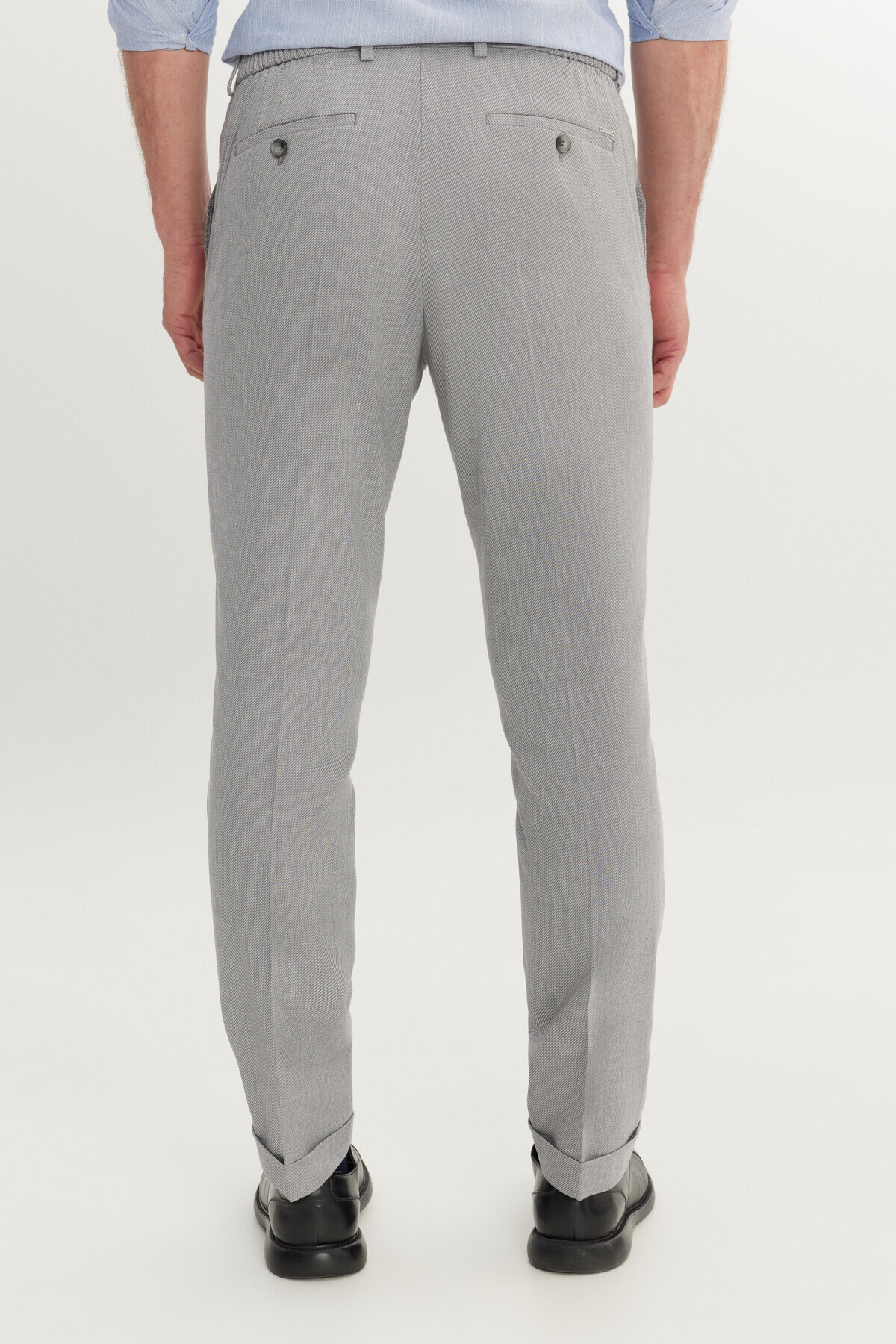 شلوار راحتی نخی اسلیم فیت باریک با جیبهای کناری و طرح مورب