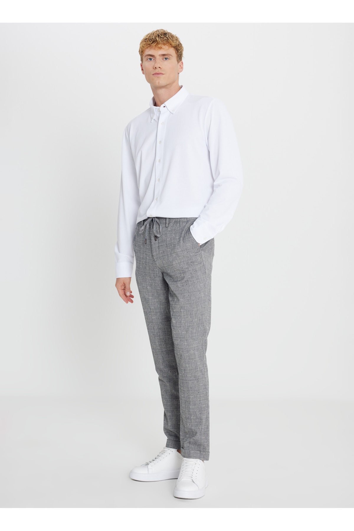شلوار مردانه سرمهای اسلیم فیت با کمر کشی و دمپا معمولی ACE001252270_LAC