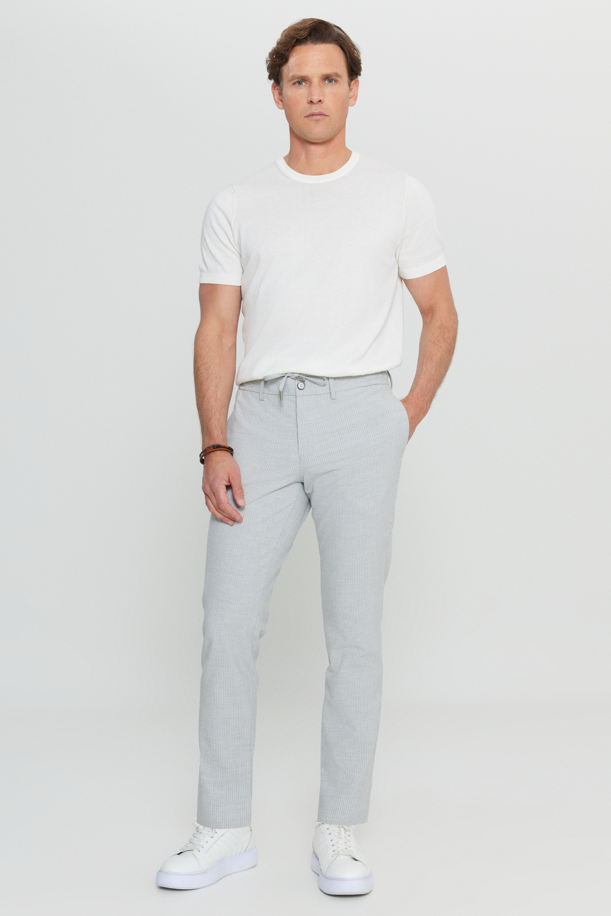 شلوار راحتی مردانه اسلیم فیت سفید-خاکستری، کمر کشی باریک، جیب کناری برجسته