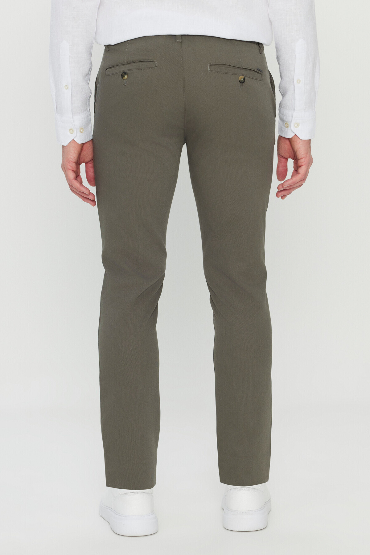 شلوار راحتی مردانه خاکی اسلیم فیت باریک جیب بغل طرحدار انعطافپذیر