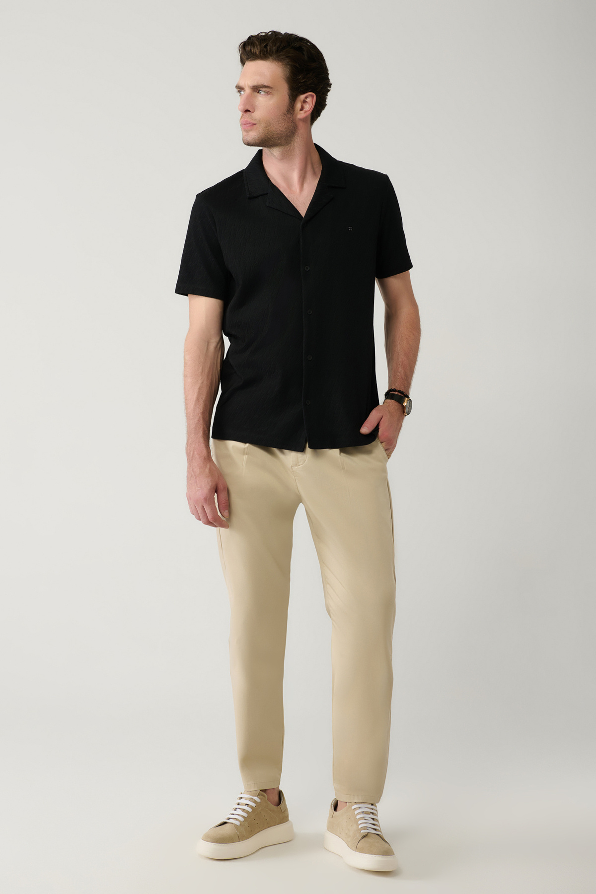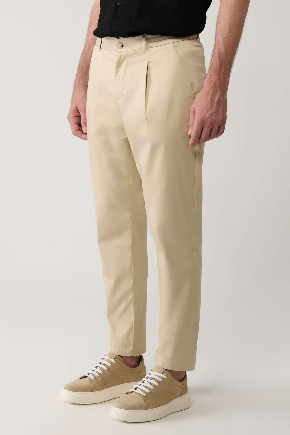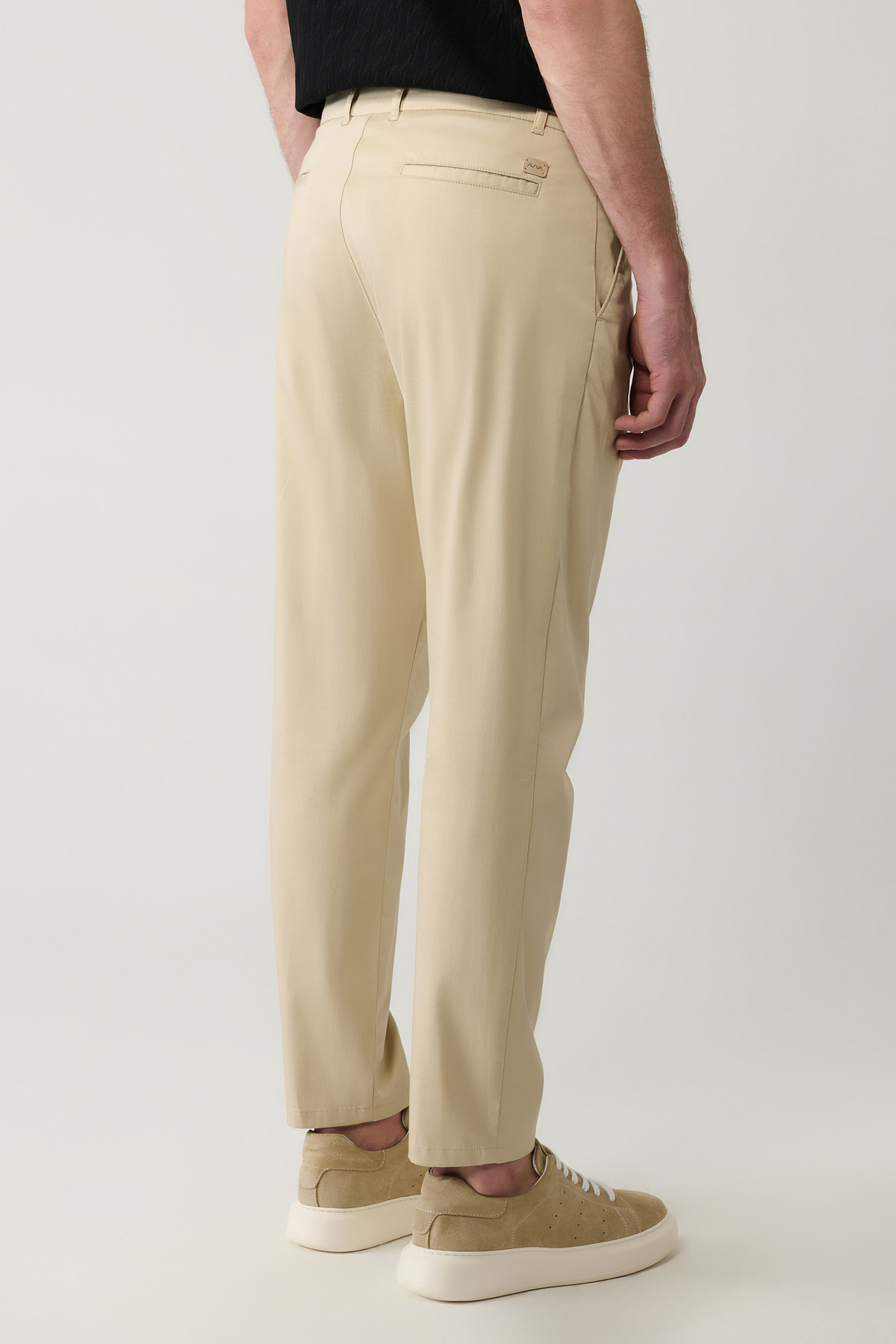 شلوار مردانه نخی بژ کلاسیک، کمر کشی، راحت، مناسب برای همه سنین، A41Y3037