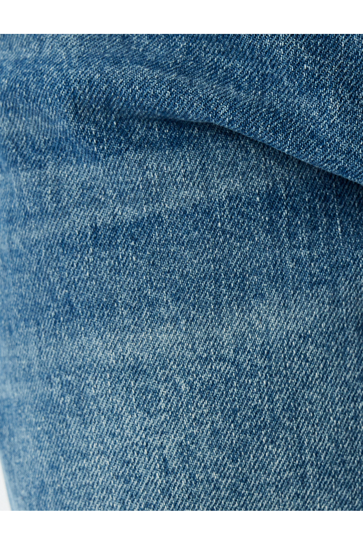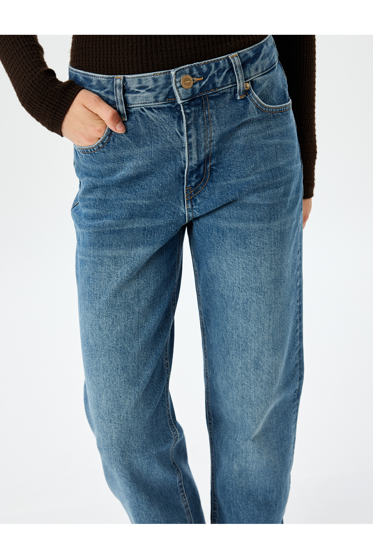 شلوار جین نخی مام فیت کمر معمولی، جیبدار و دکمهدار
