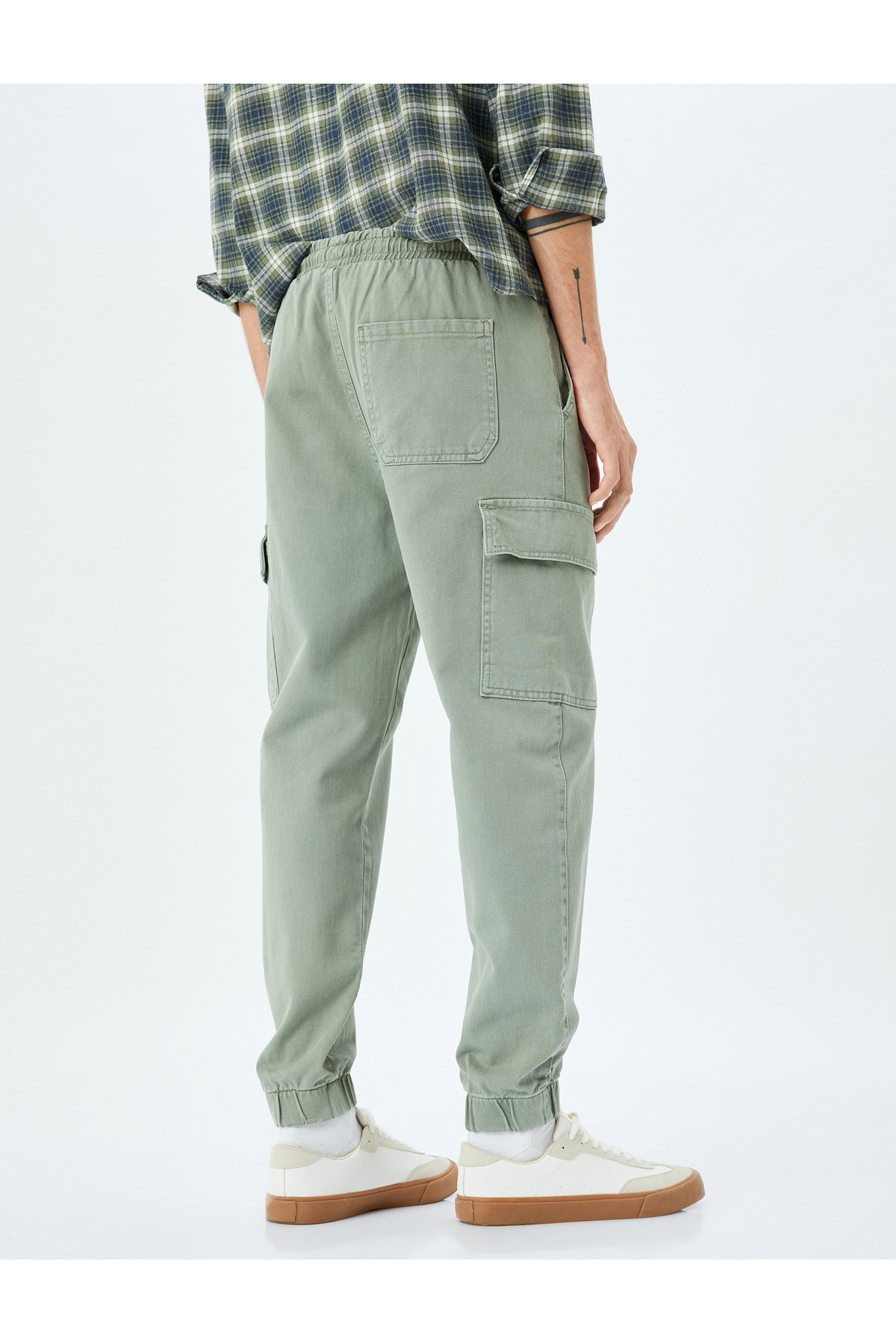 شلوار گاباردین کارگو جاگر نخی با کمر کشی و جیب