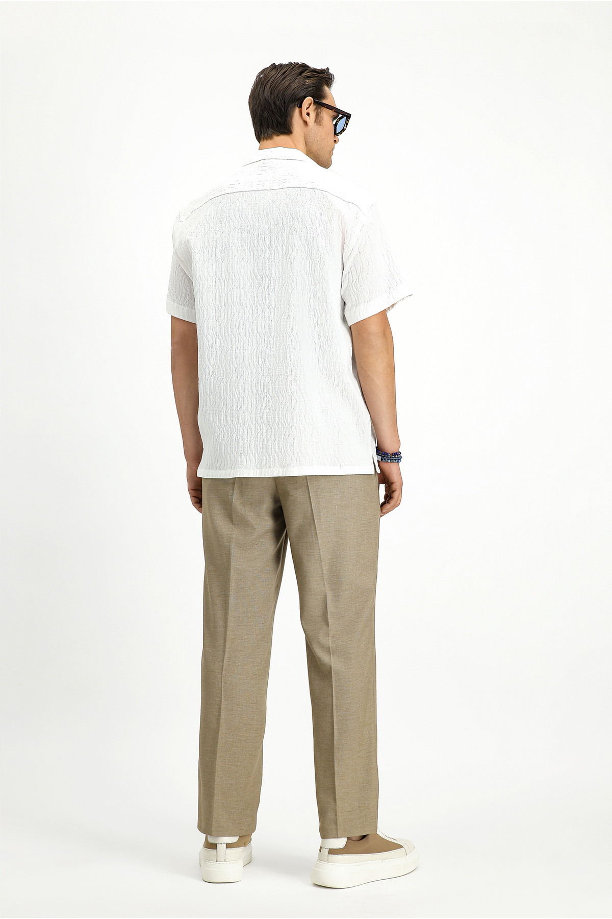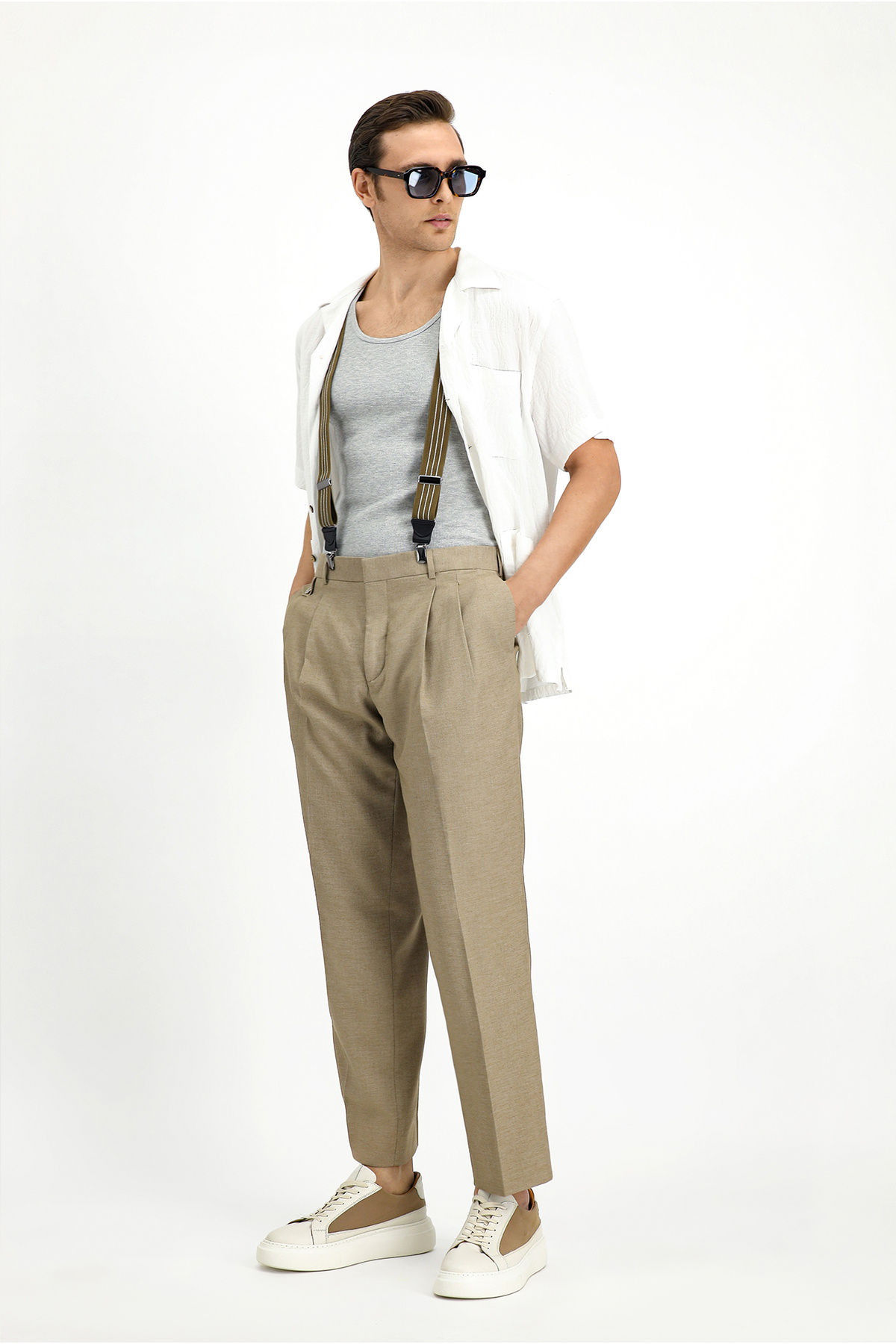 شلوار پارچهای کلاسیک پلیسهدار از جنس کتان معمولی