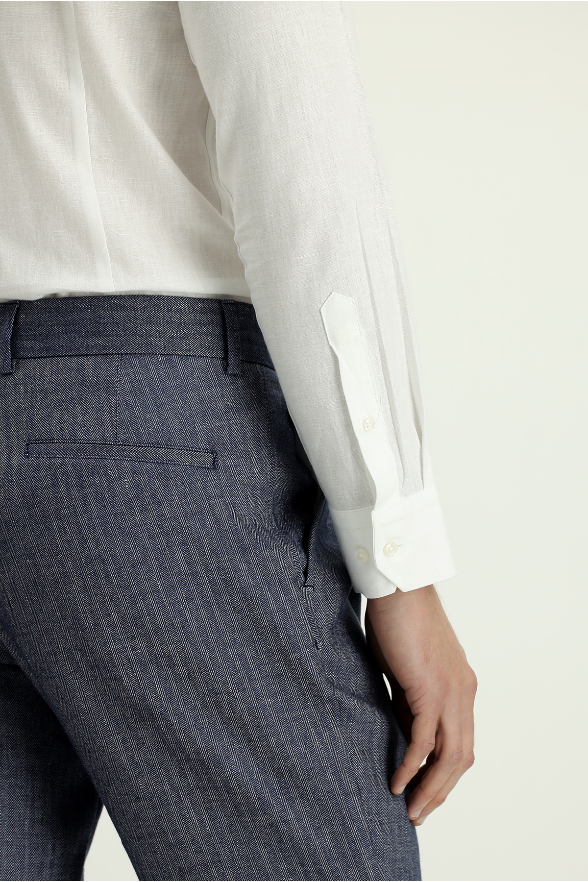 شلوار پارچهای کلاسیک پلیسهدار طرحدار باریک و باریک با برش باریک و ترکیبی از کتان