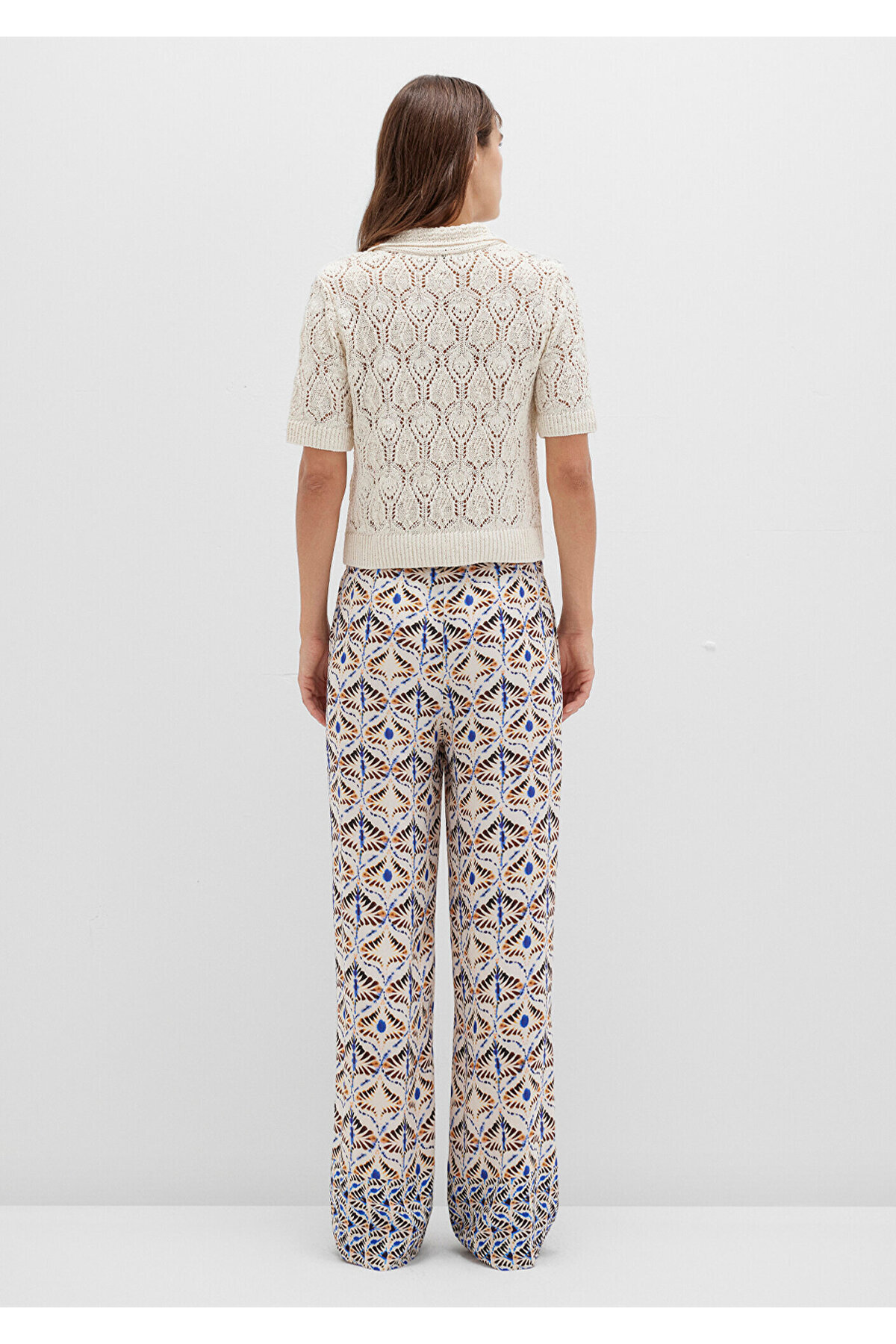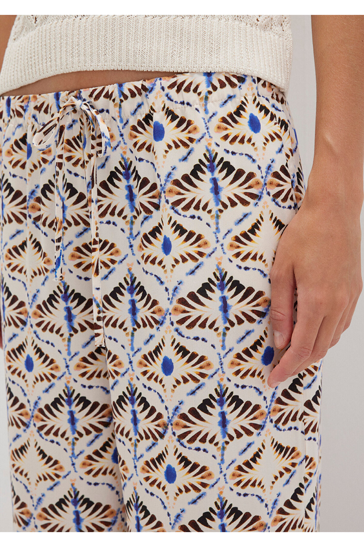 شلوار بژ طرح‌دار قومی با بند کشی، کد 1011123-91008