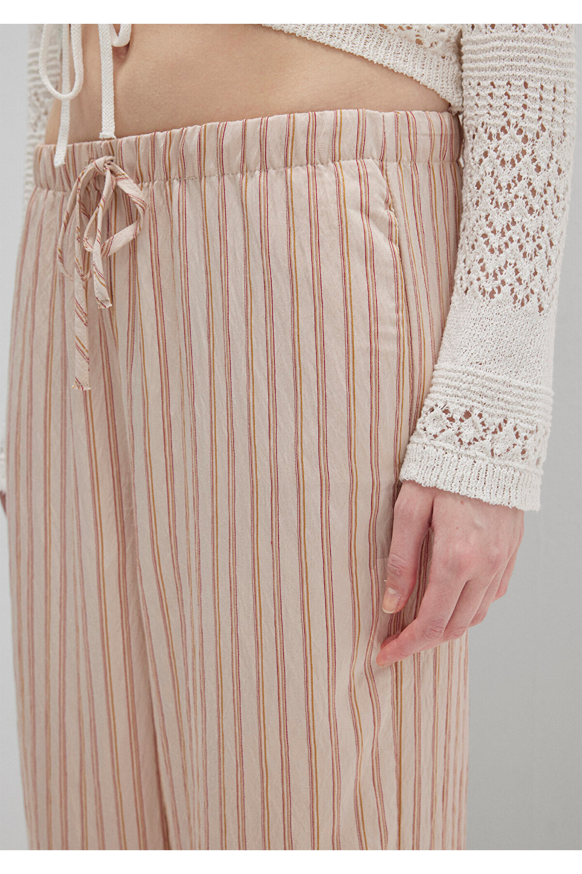 شلوار بژ راه راه با کمر کشی 1011024-90719