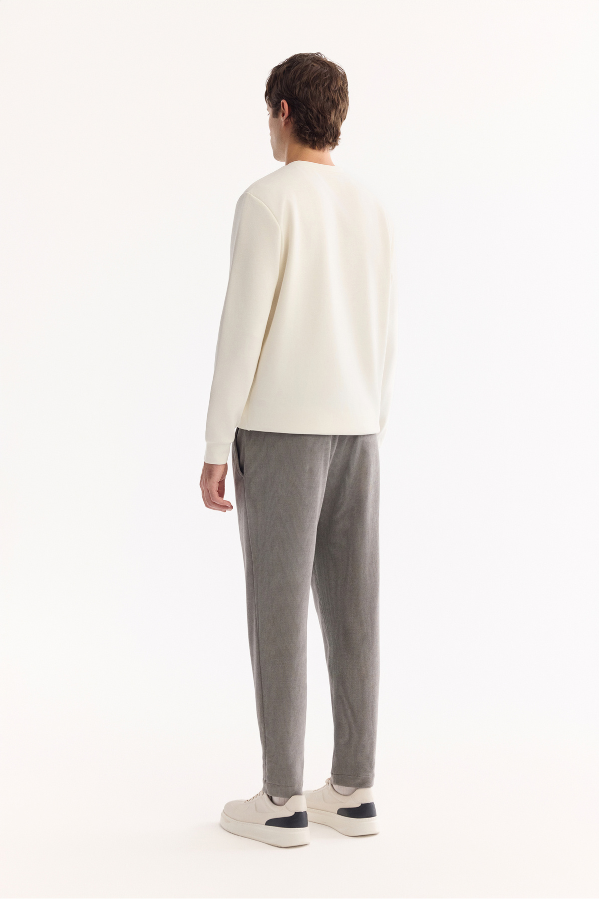 شلوار مردانه خاکستری مخمل کبریتی مدل Carrot Fit با کنارههای کشسان A52Y3039