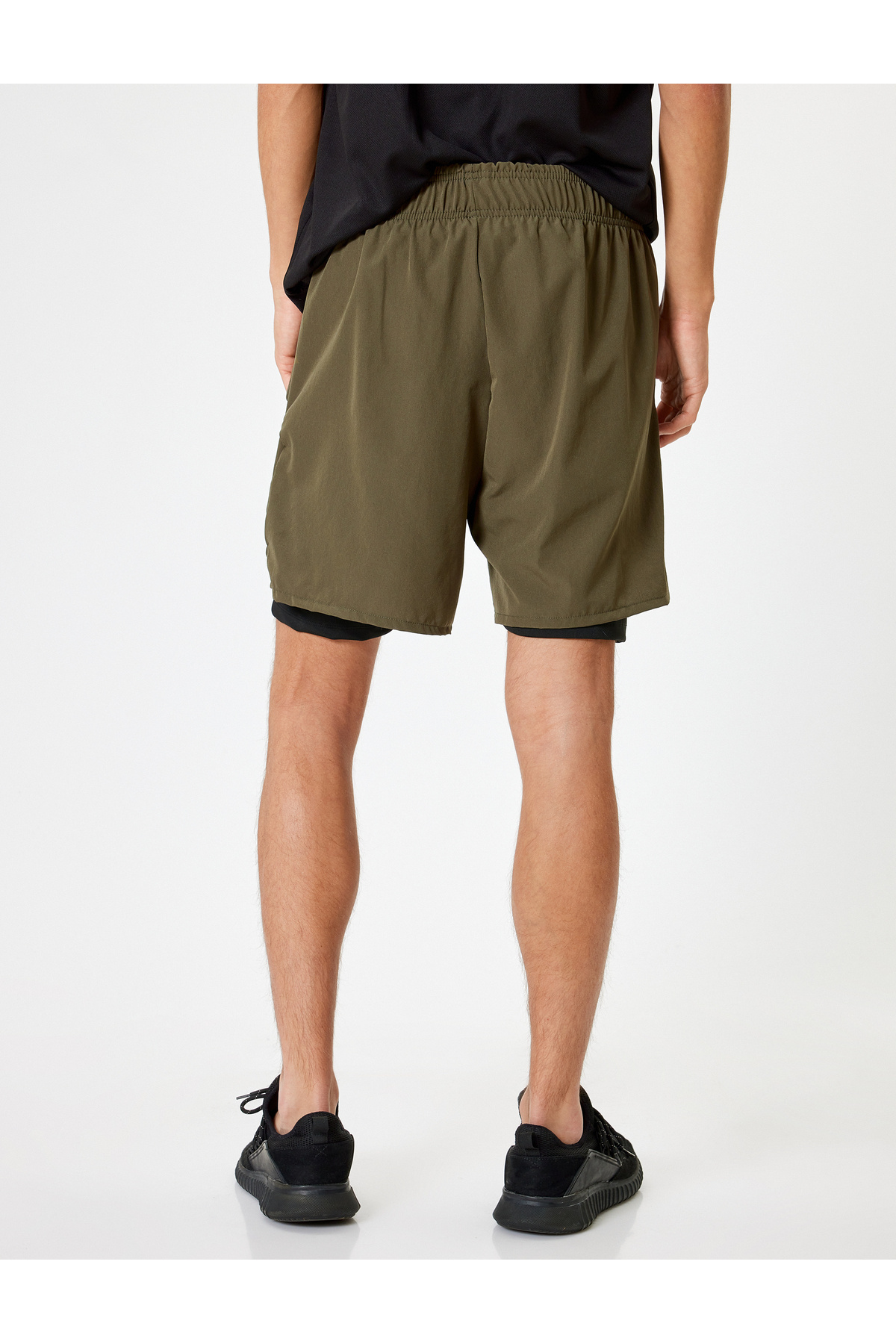 شلوارک ورزشی با لگینگ، پارچه چتر نجات، دارای طرح رنگی، دارای جیب
