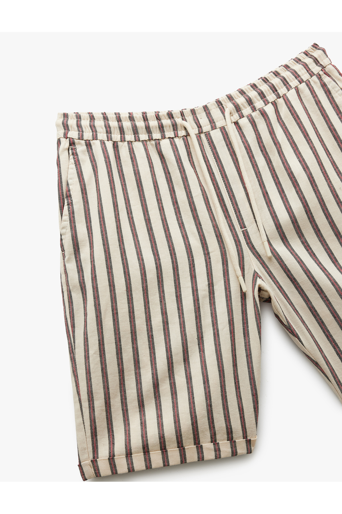 شلوارک برمودا طرح کتان با جیب و کمر راه راه