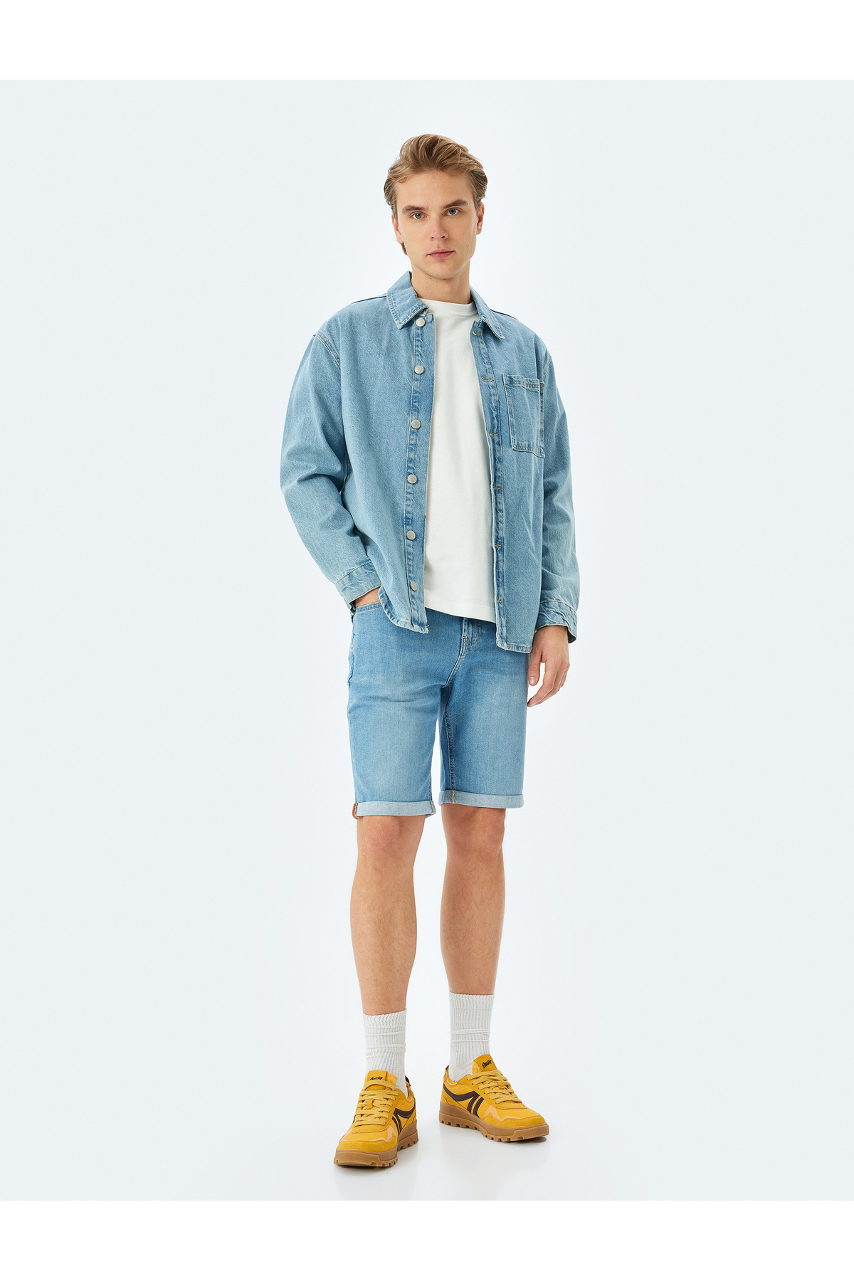 شلوارک جین اسلیم فیت برمودا لبه تاشو