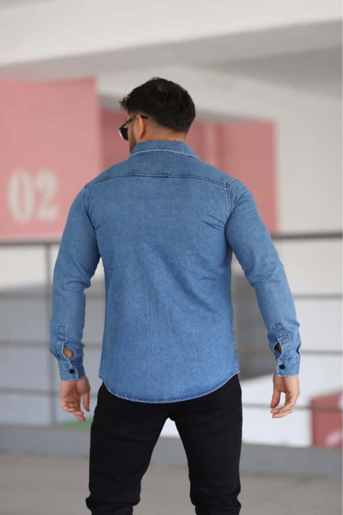 پیراهن جین مردانه، فیت باریک، دو جیب، دکمهدار پهن، بدون الیاف slycra