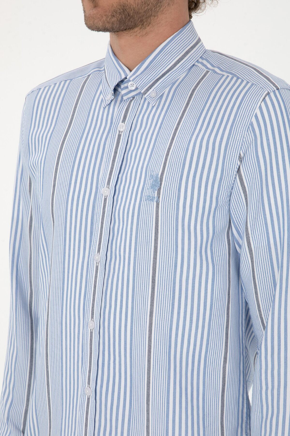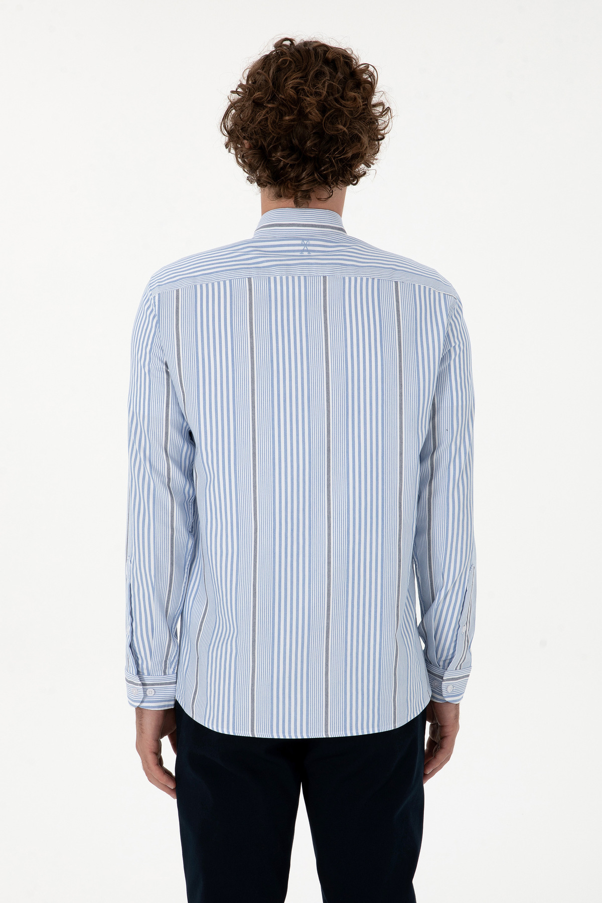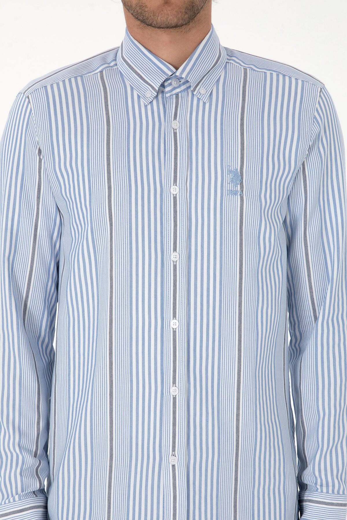 پیراهن مردانه آستین بلند راه راه سفید آبی روشن 50316573-VR003