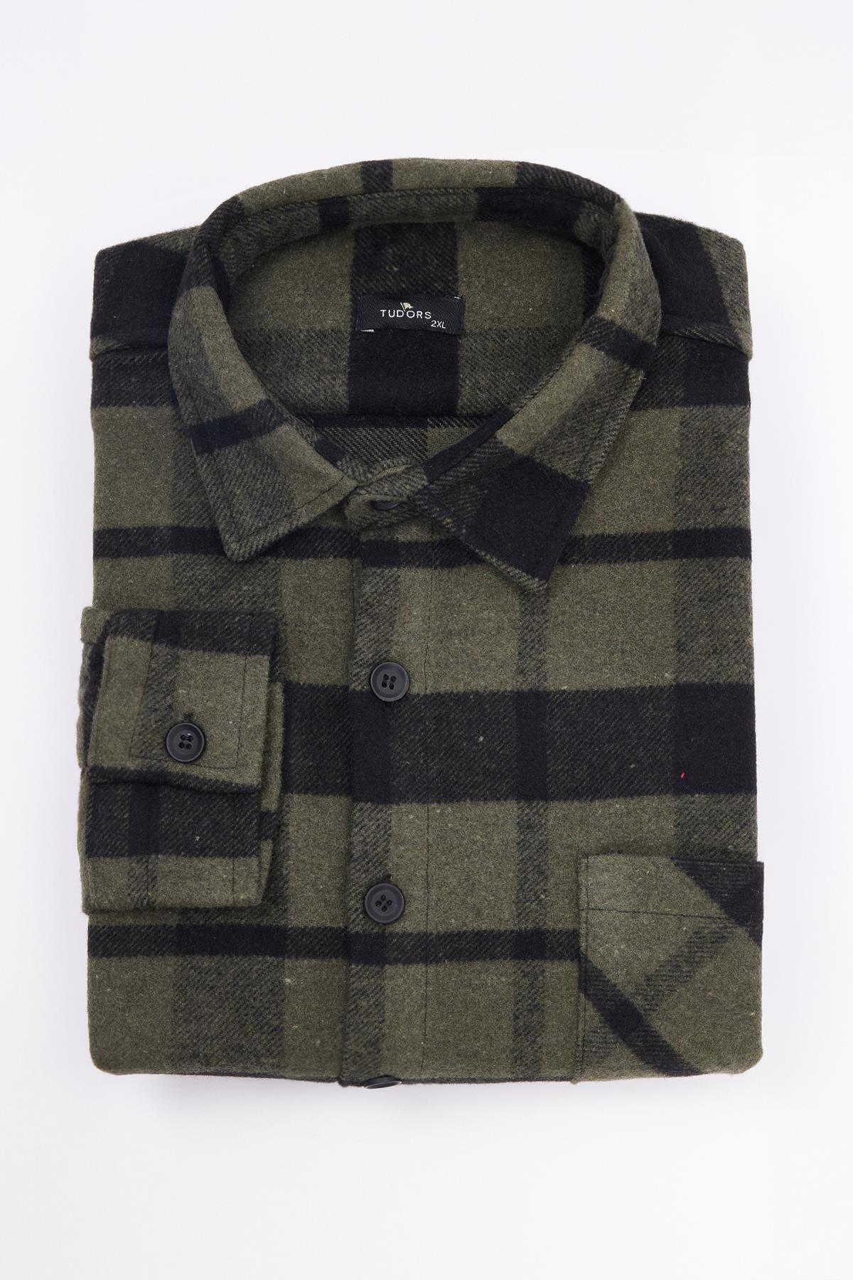 پیراهن مردانه طرح چوب زمستانی طرح چهارخانه جیبدار آستین بلند سایز بزرگ