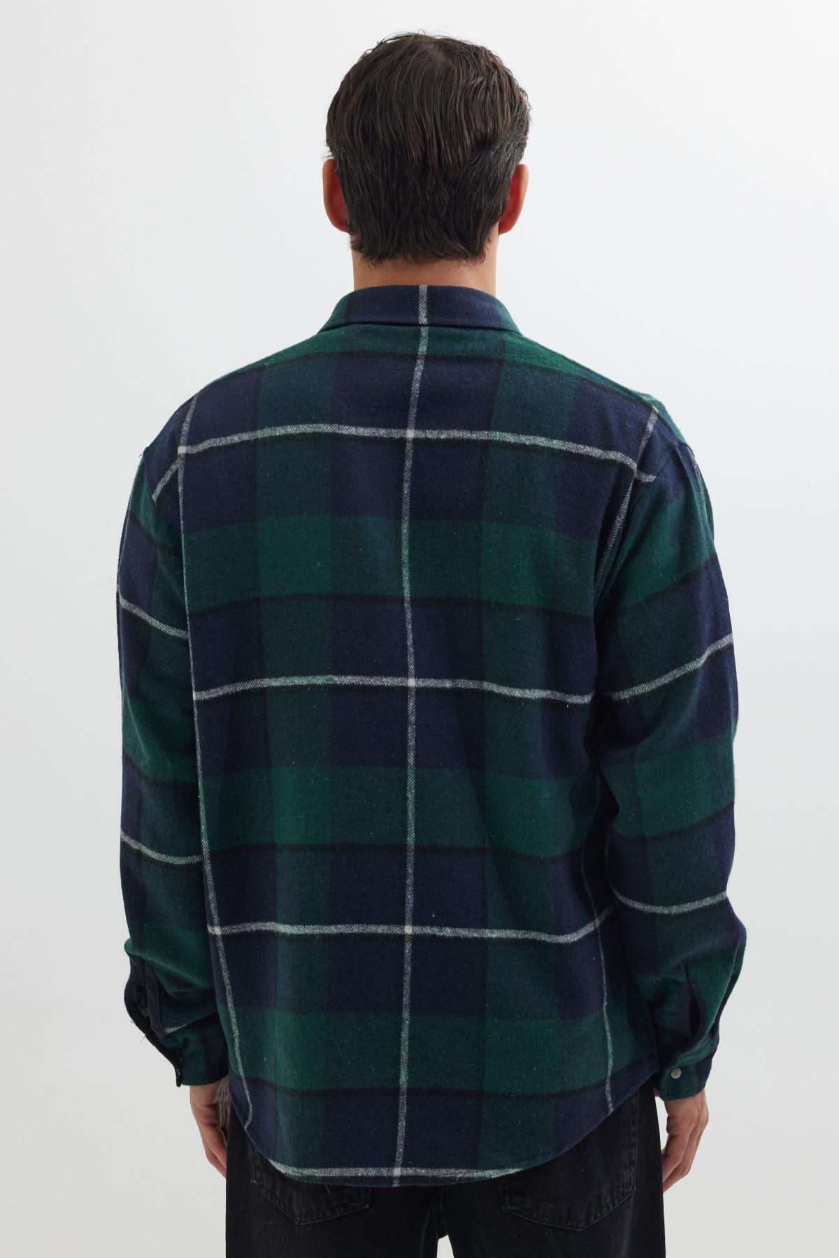 پیراهن مردانه زمستانی طرح چهارخانه دکمهدار دو جیب، مدل Lumberjack، راحت و فیت