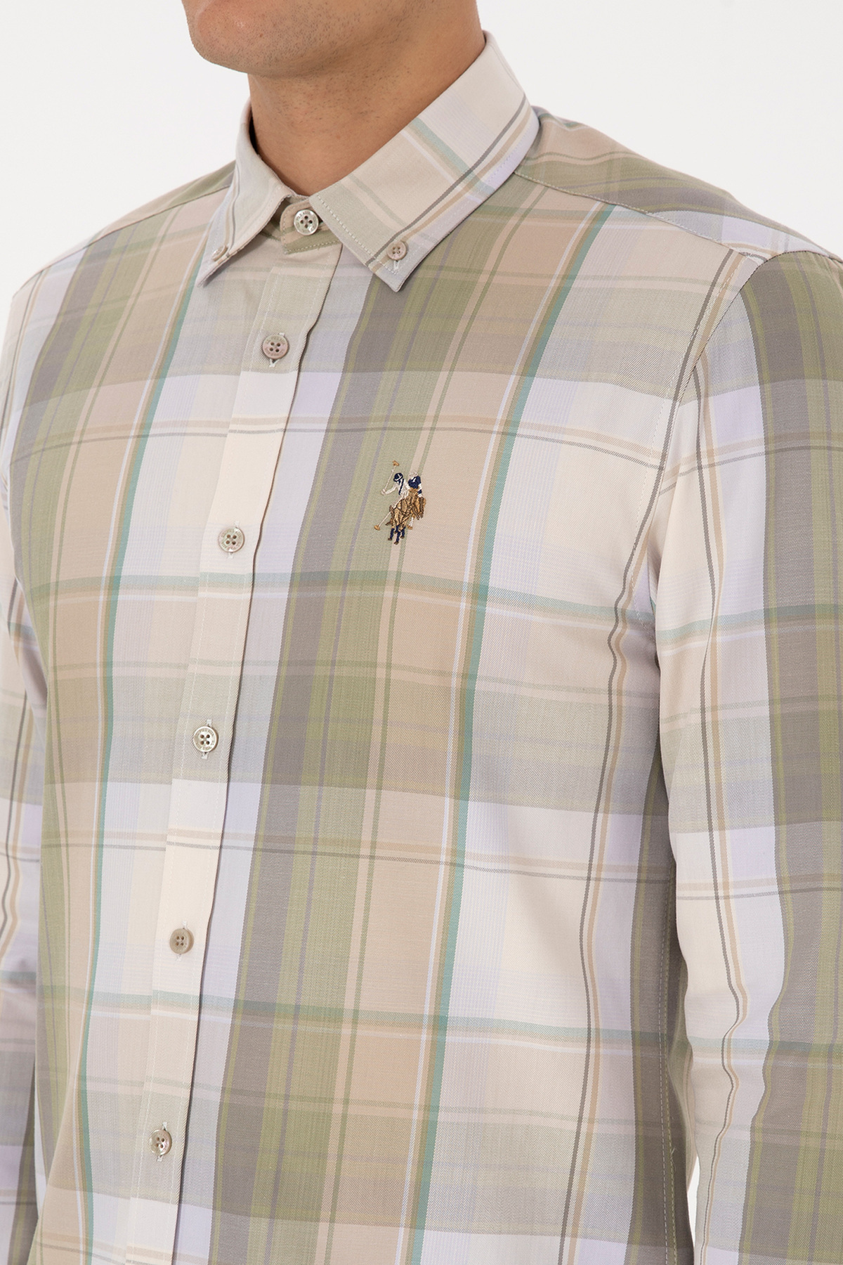 پیراهن مردانه آستین بلند چهارخانه بژ 50315922-VR245
