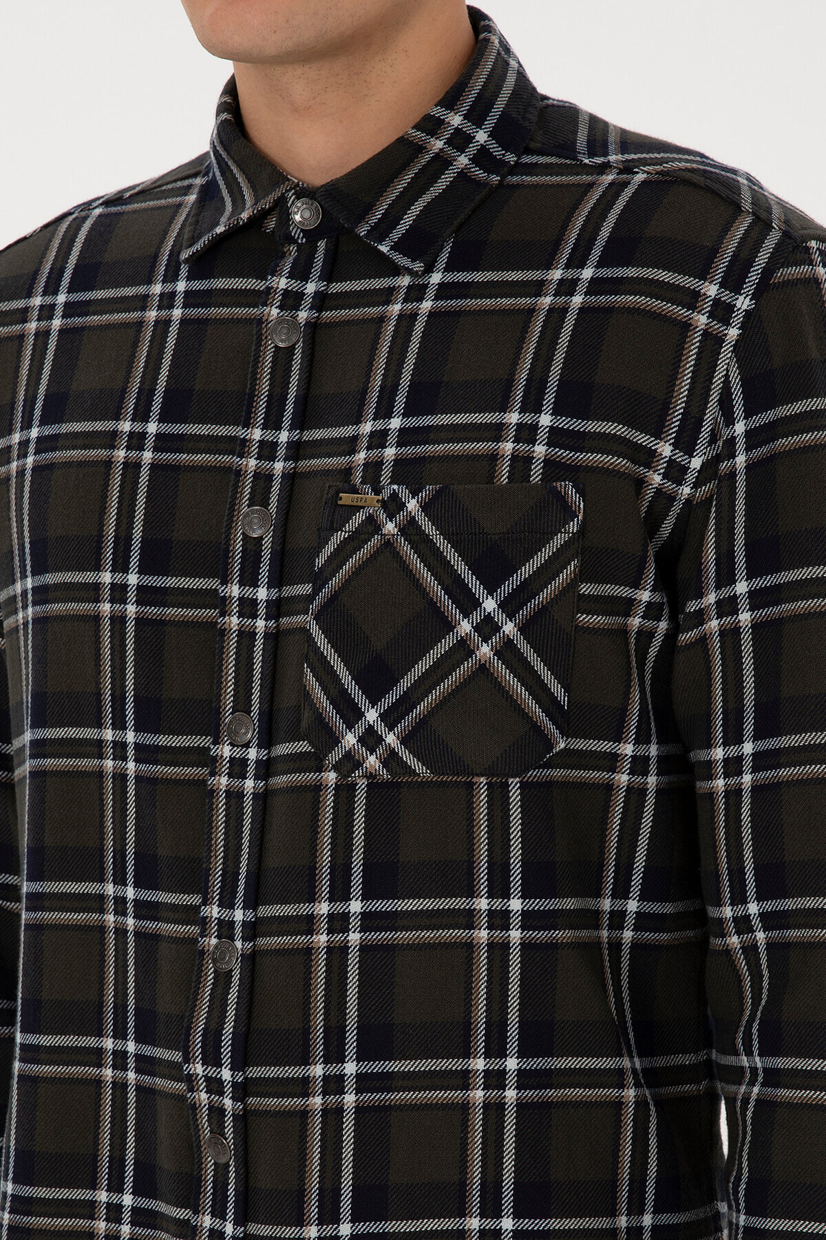 پیراهن آستین بلند مردانه سبز تیره 50313416-VR079