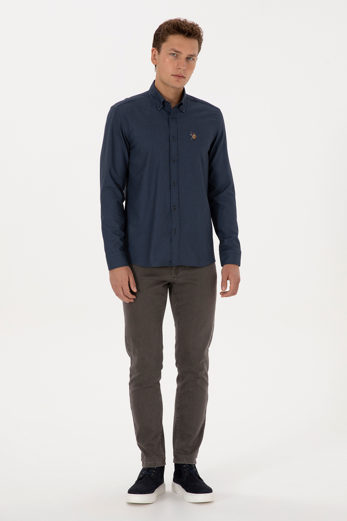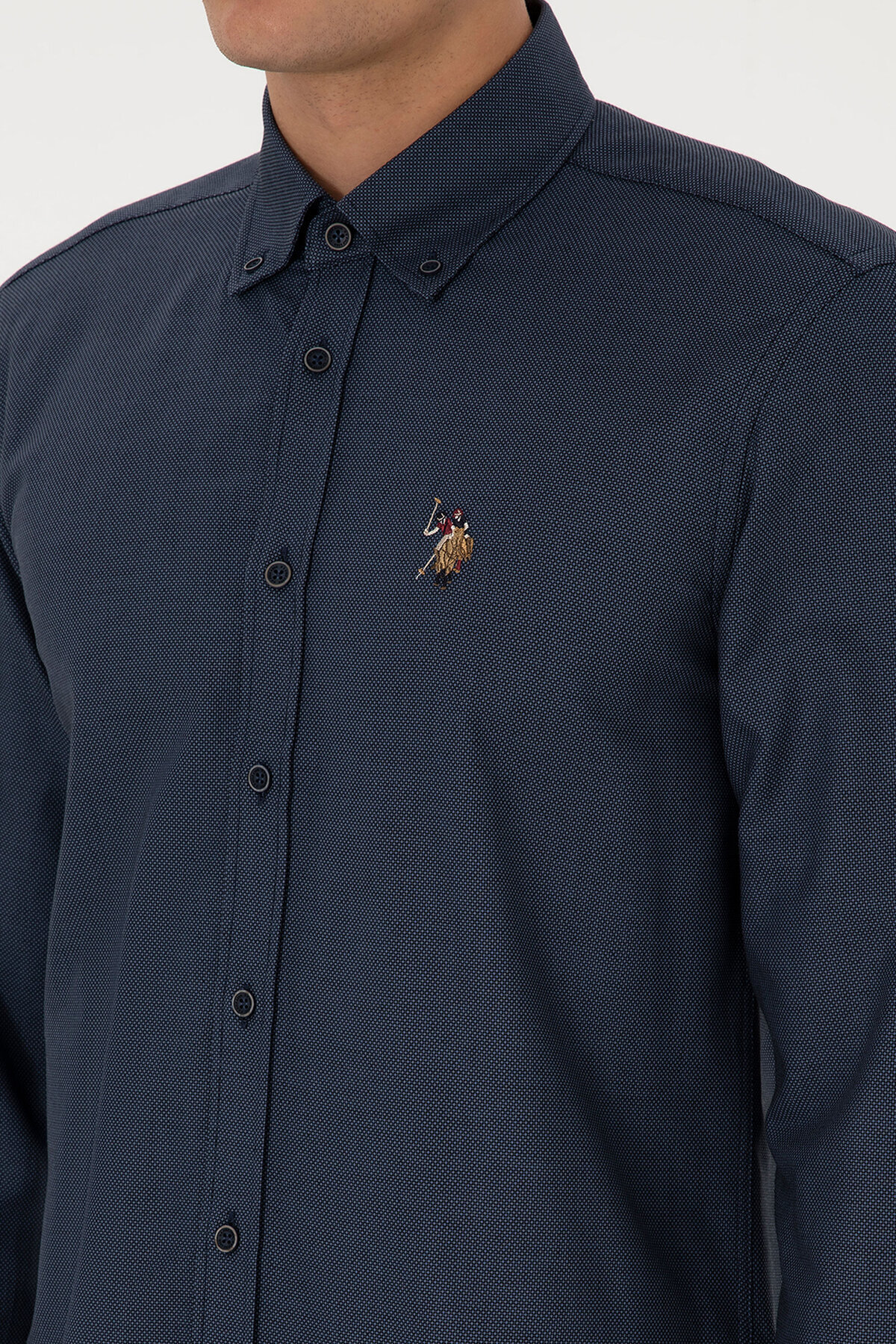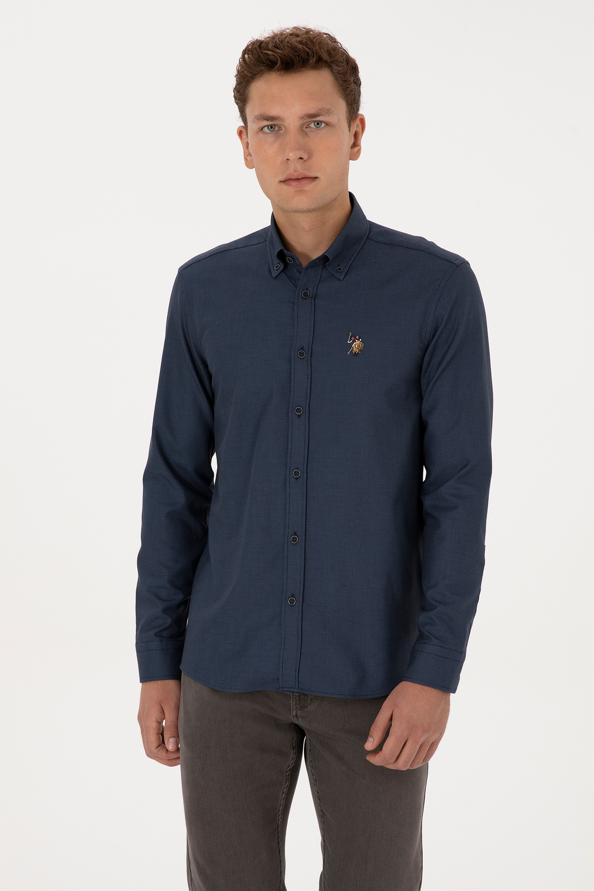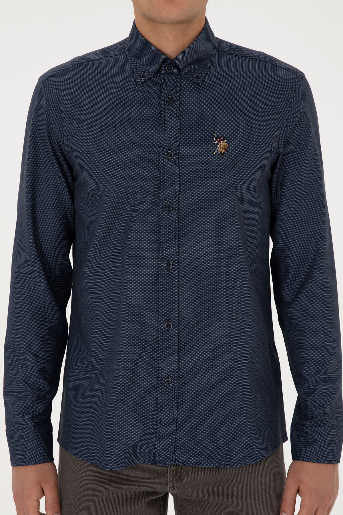 پیراهن یو اس پولو آبی سرمه ای آستین بلند منسوجات | | نمایندگی یو اس پولو
