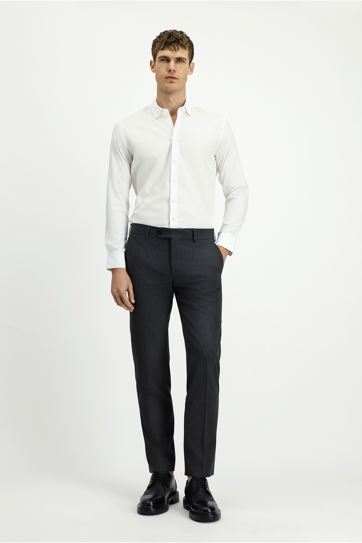 پیراهن نخی طرحدار کلاسیک آستین بلند اسلیم فیت فیت