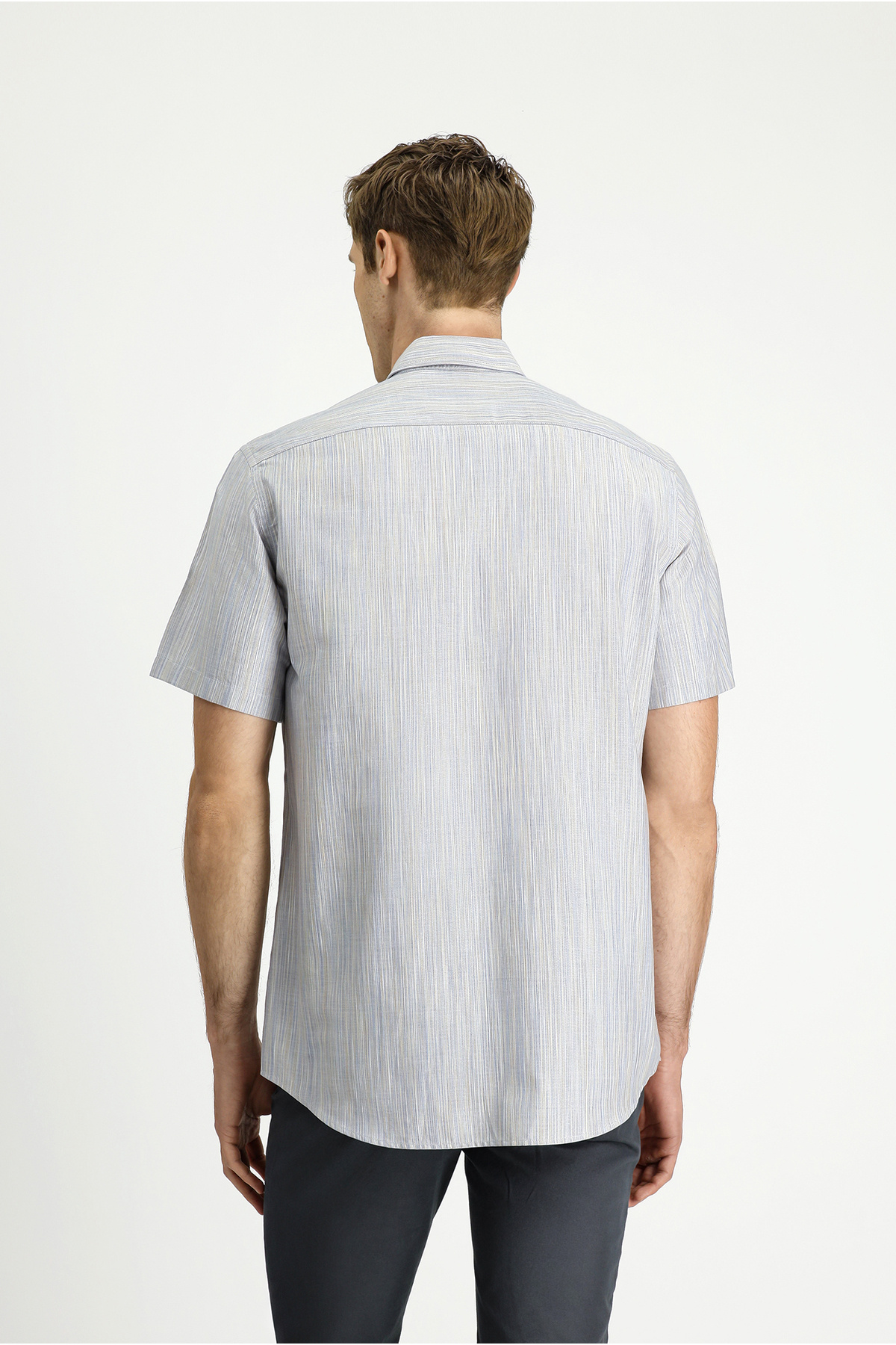 پیراهن نخی طرحدار آستین کوتاه معمولی، طرحدار، اسپرت، یقه دکمهدار