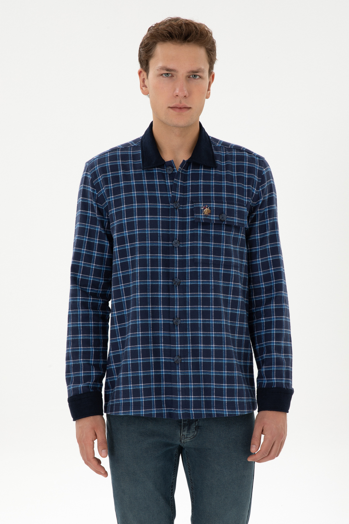 پیراهن یو اس پولو آبی آستین بلند منسوجات | | نمایندگی یو اس پولو