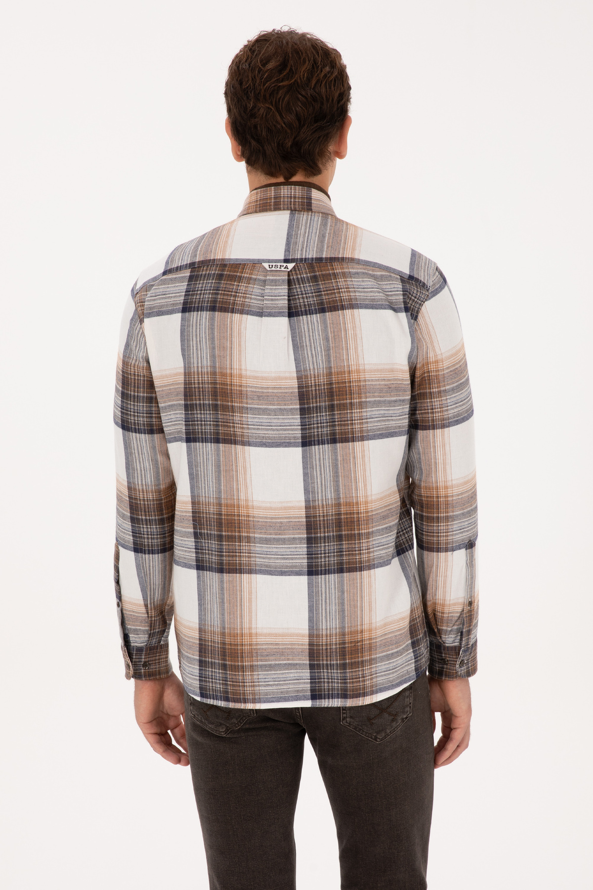 پیراهن یو اس پولو قهوه ای آستین بلند منسوجات | | نمایندگی یو اس پولو