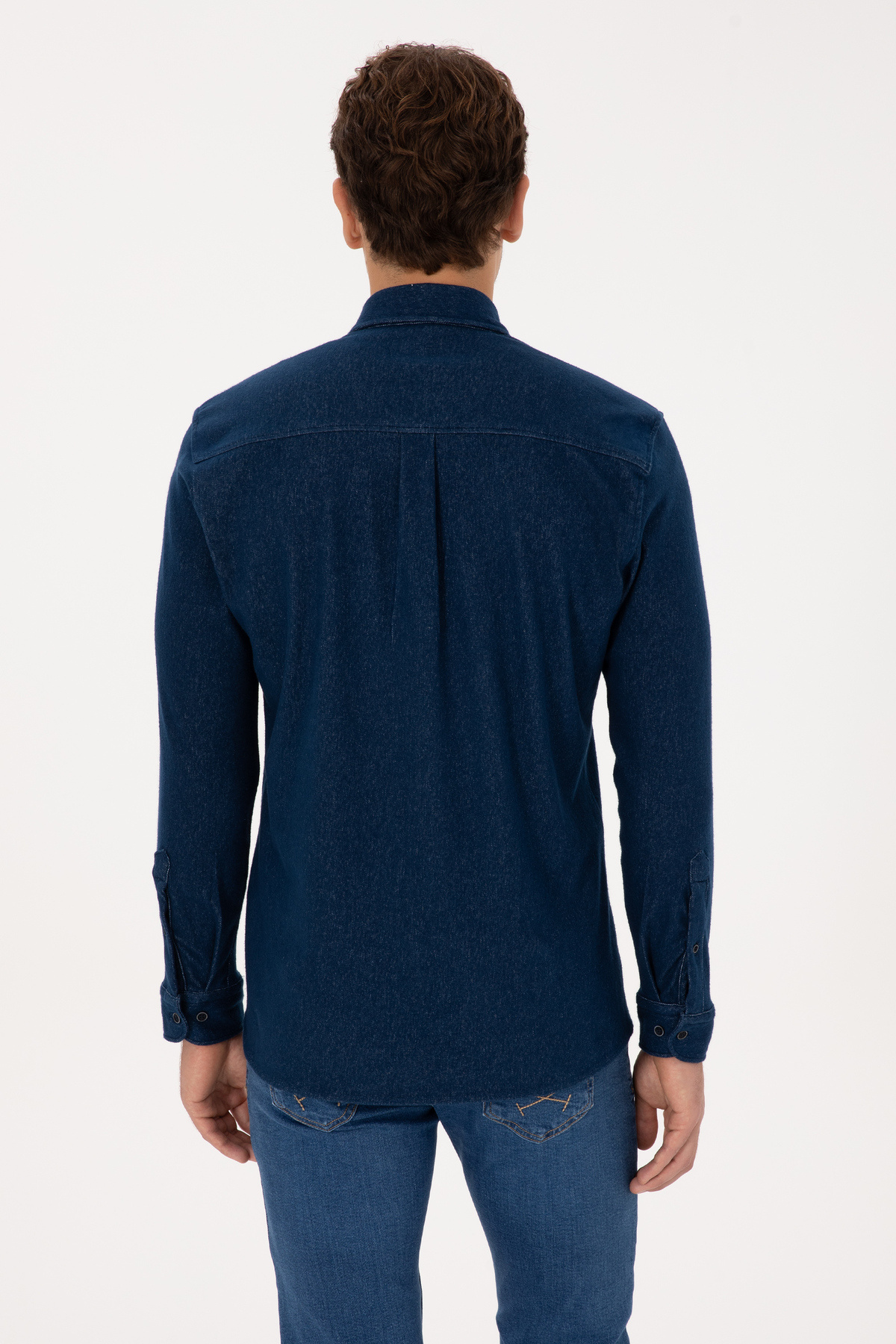 پیراهن یو اس پولو آبی سرمه ای آستین بلند منسوجات | | نمایندگی یو اس پولو