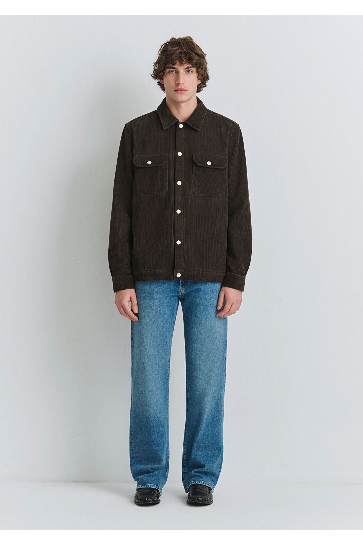 پیراهن مخمل جیبدار قهوهای، فیت گشاد / برش آزاد و راحت 0211750-70219