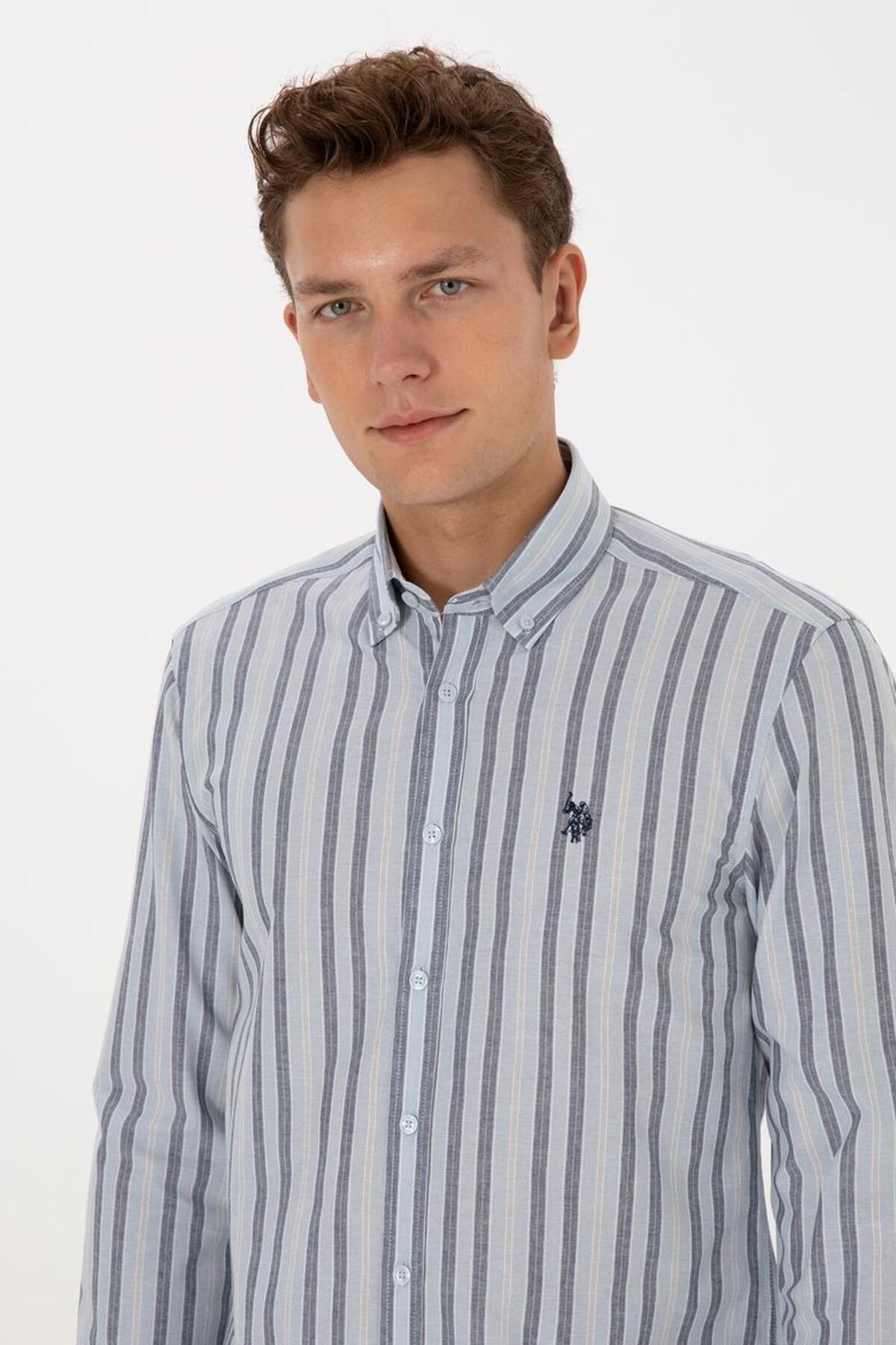 پیراهن آستین بلند راه راه آبی روشن مردانه TEKSPOR223655.2