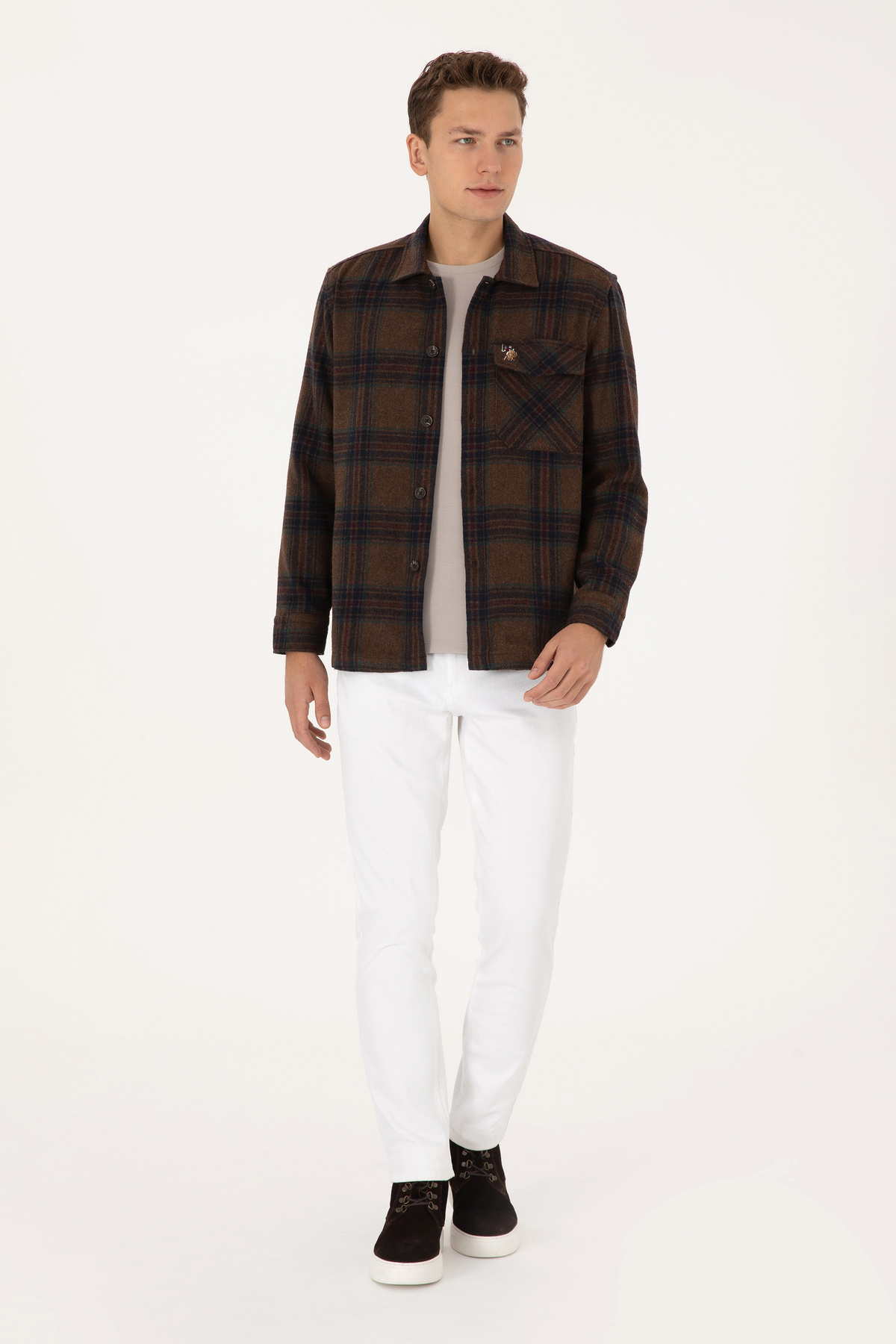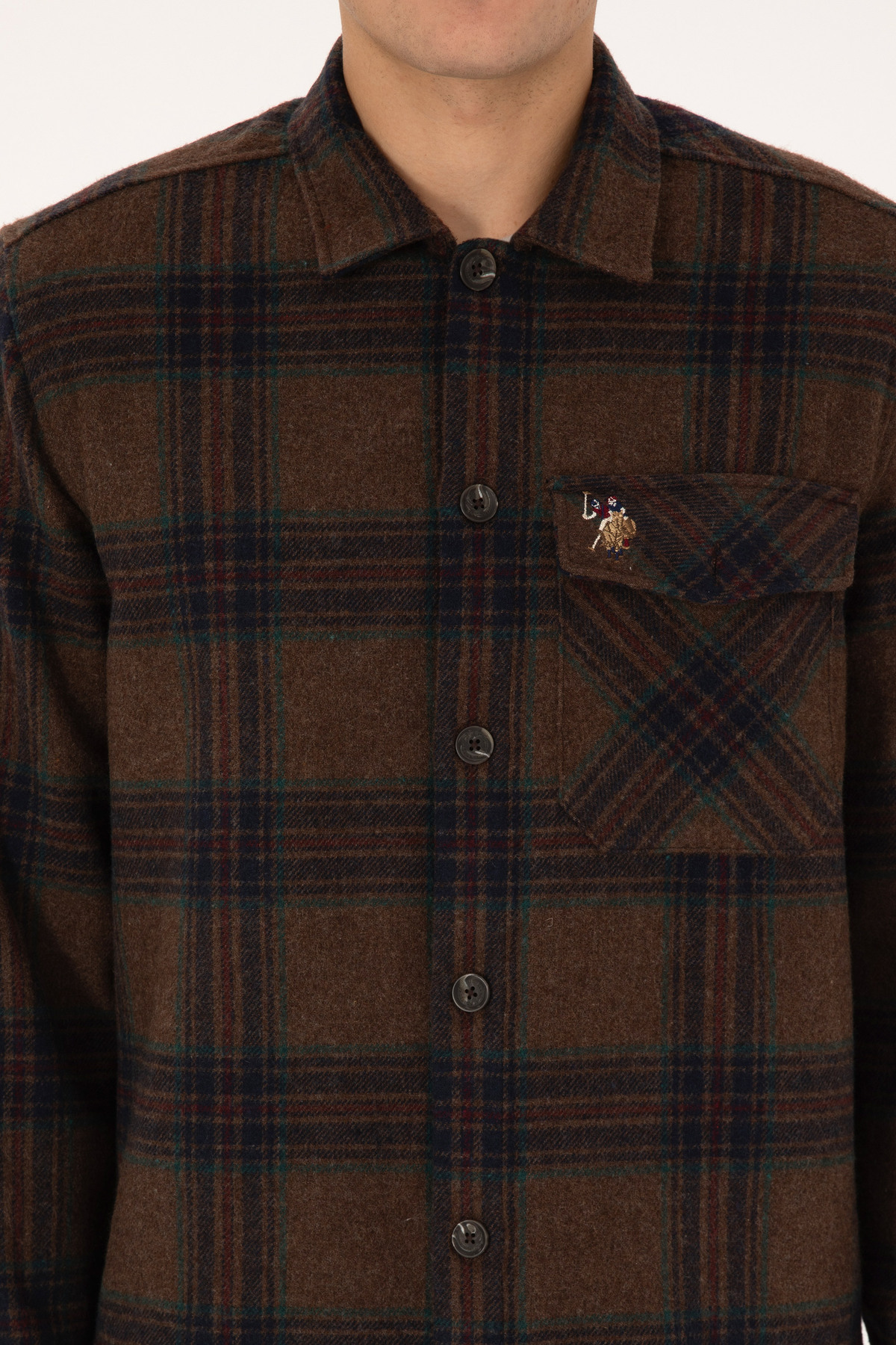 پیراهن یو اس پولو قهوه ای آستین بلند منسوجات | | نمایندگی یو اس پولو