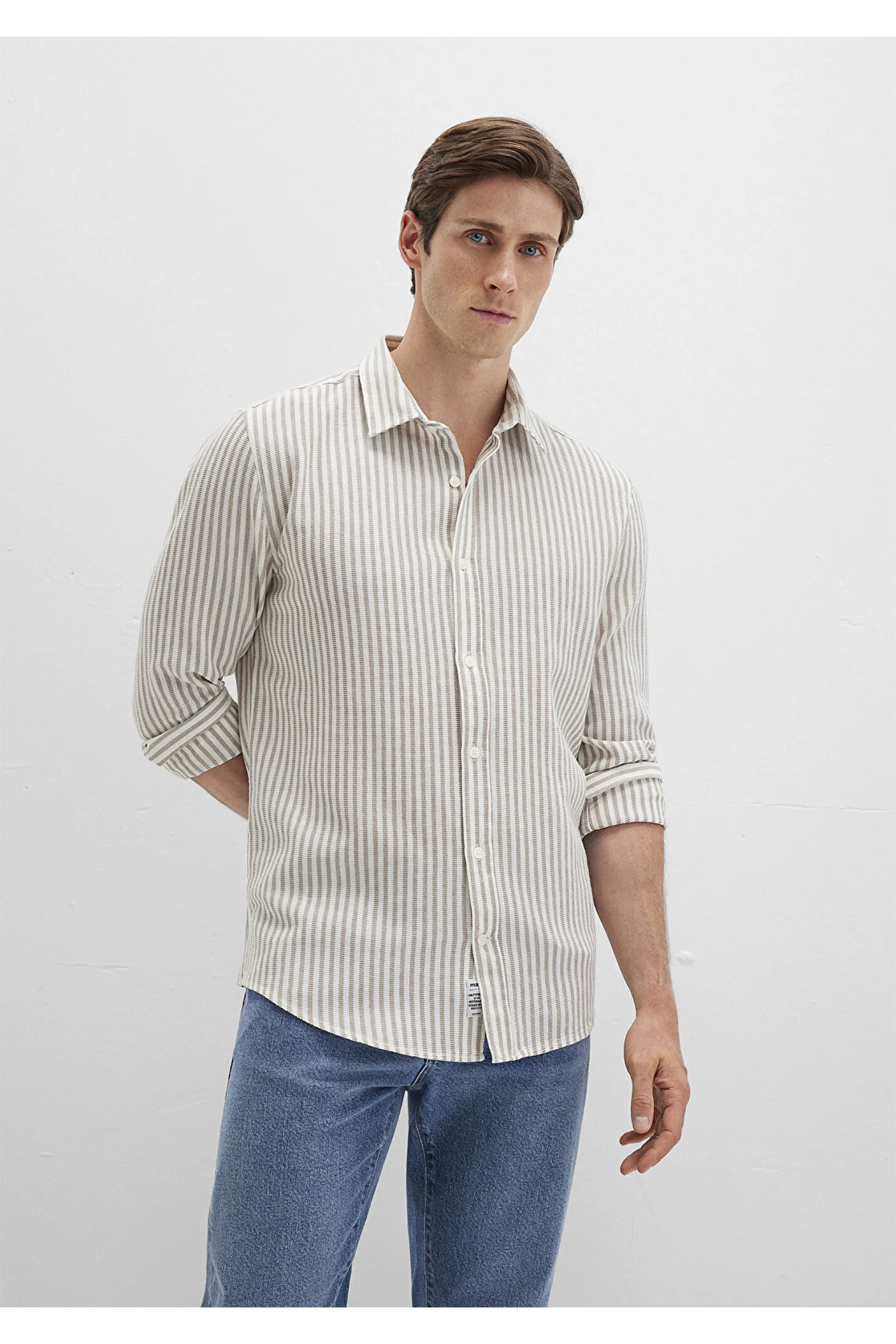 پیراهن راه راه بژ، فیت باریک / برش باریک 0211692-90940