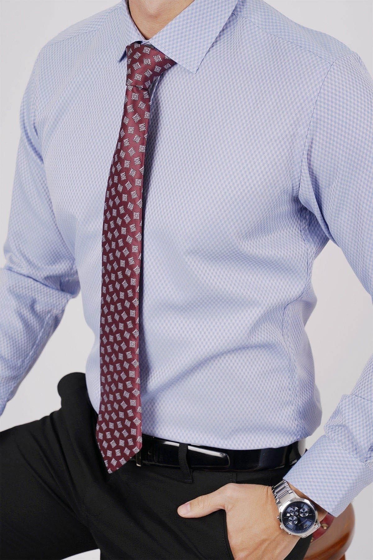 ست پیراهن و کراوات طرح مربع آبی باقلوا و زرشکی در جعبه کادویی