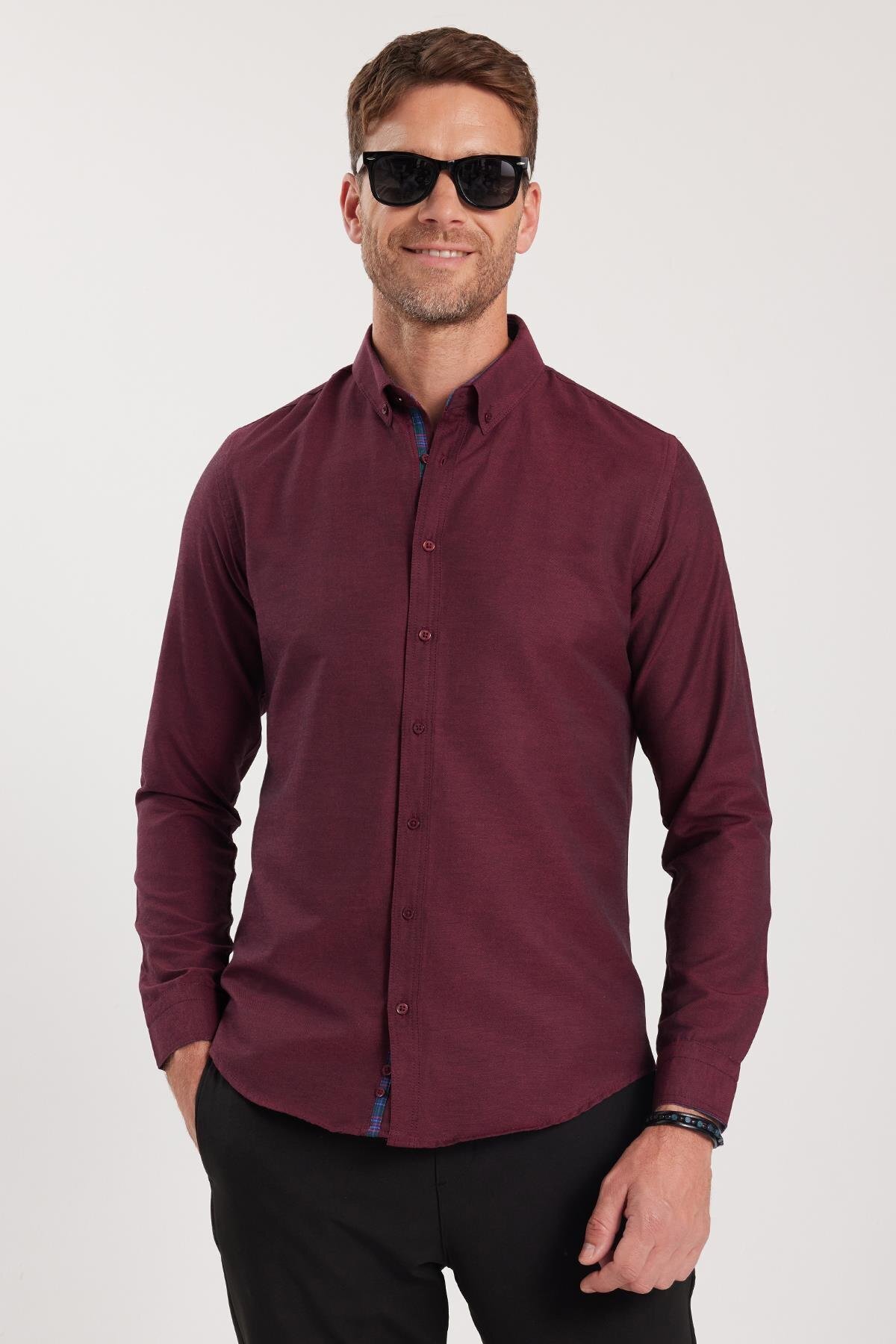 خانه مردانه پوشاک پیراهن پیراهن مردانه بورگوندی | DR17132-141 Tudors