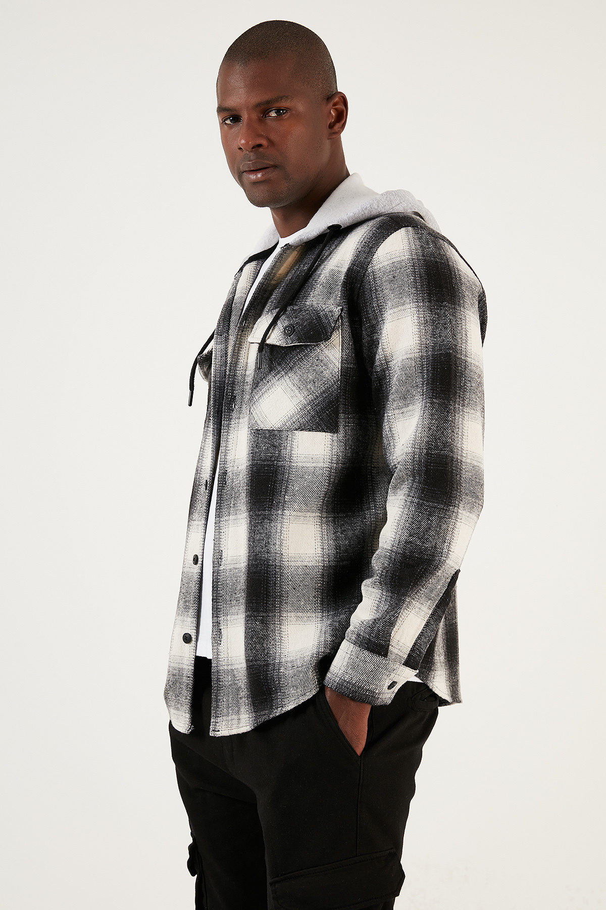پیراهن مردانه طرح چوب چهارخانه دو جیب کلاه دار CF22W2650
