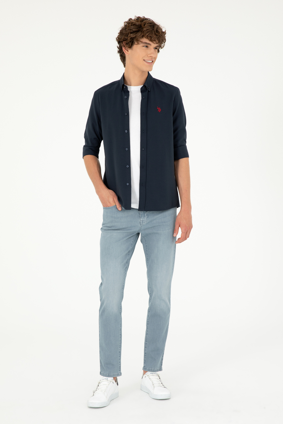 پیراهن یو اس پولو آبی سرمه ای آستین استاندارد منسوجات | | نمایندگی یو اس پولو