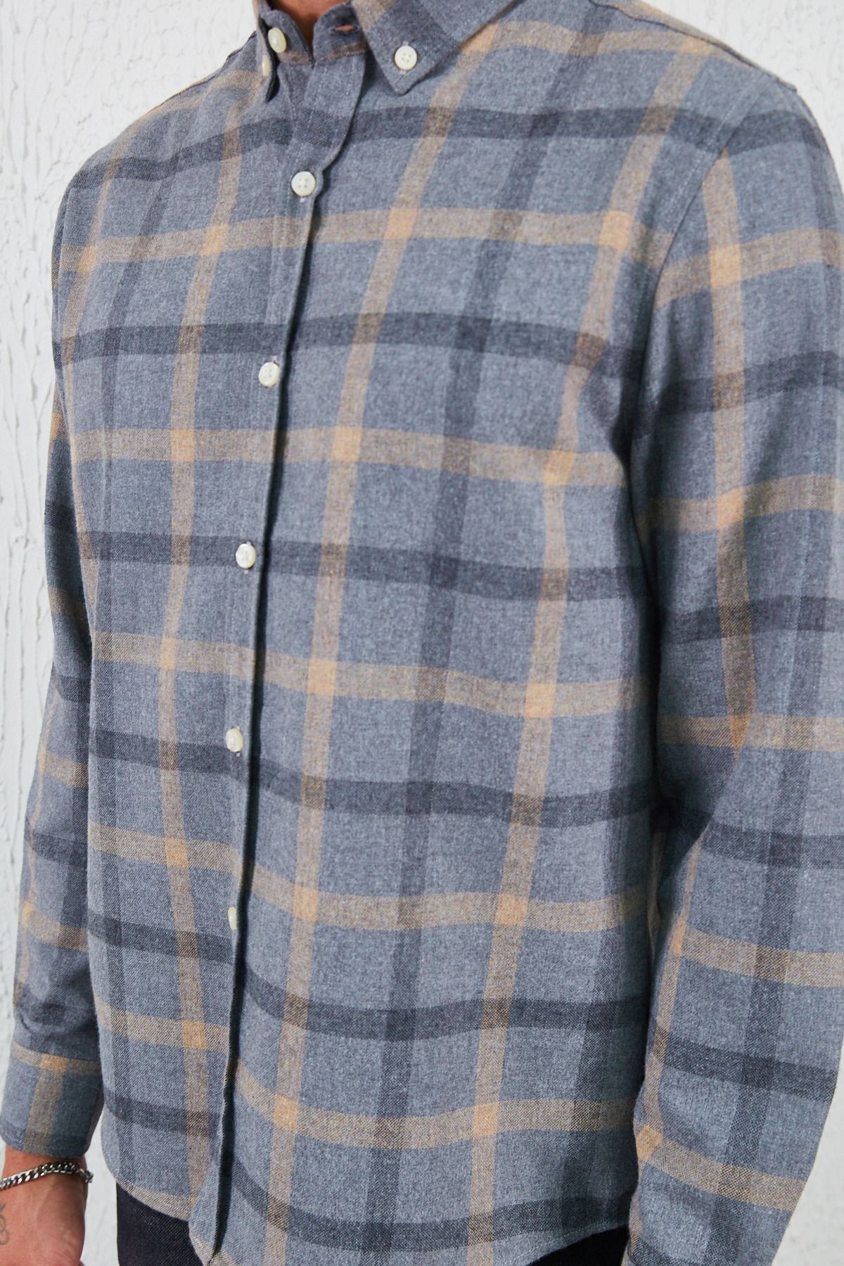 پیراهن زمستانی فلانل خاکستری چهارخانه