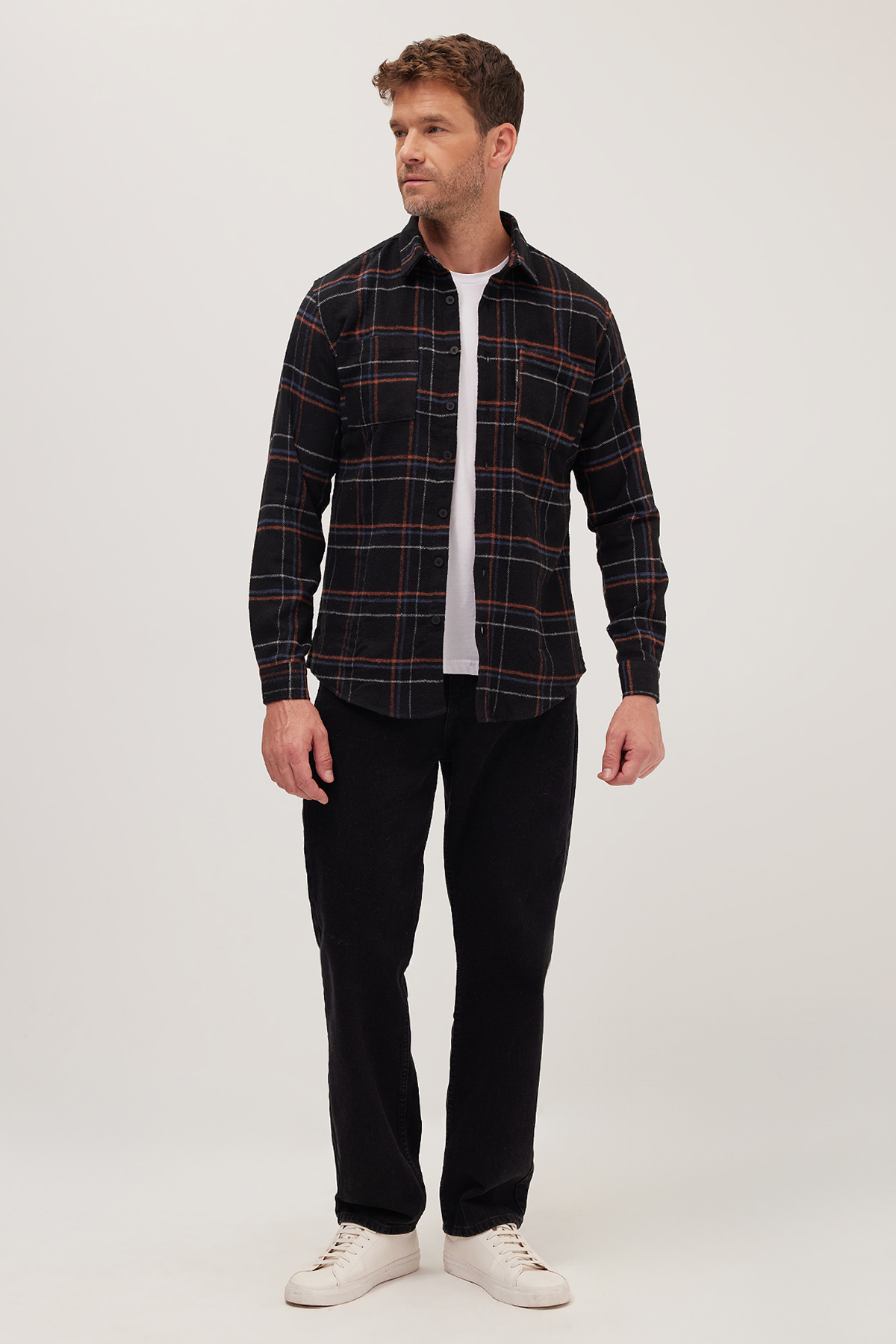 پیراهن مردانه زمستانی طرح چوب جنگلی، آستین بلند و اسلیم فیت، چهارخانه، دو جیب