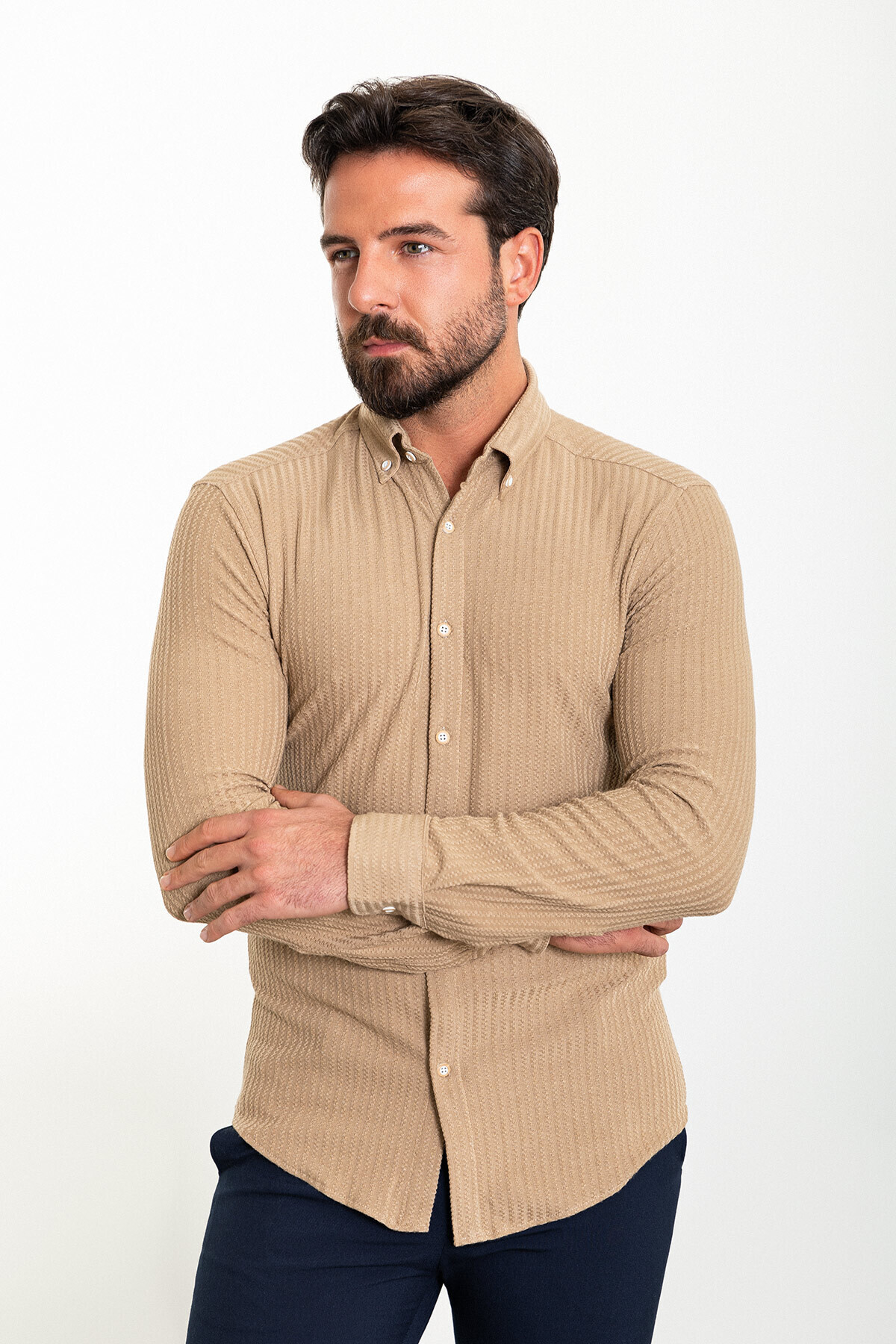 https://www.trendyol.com/mcr/cizgili-slim-fit-erkek-gomlek-kamel-37838-23k-p-778500019 |