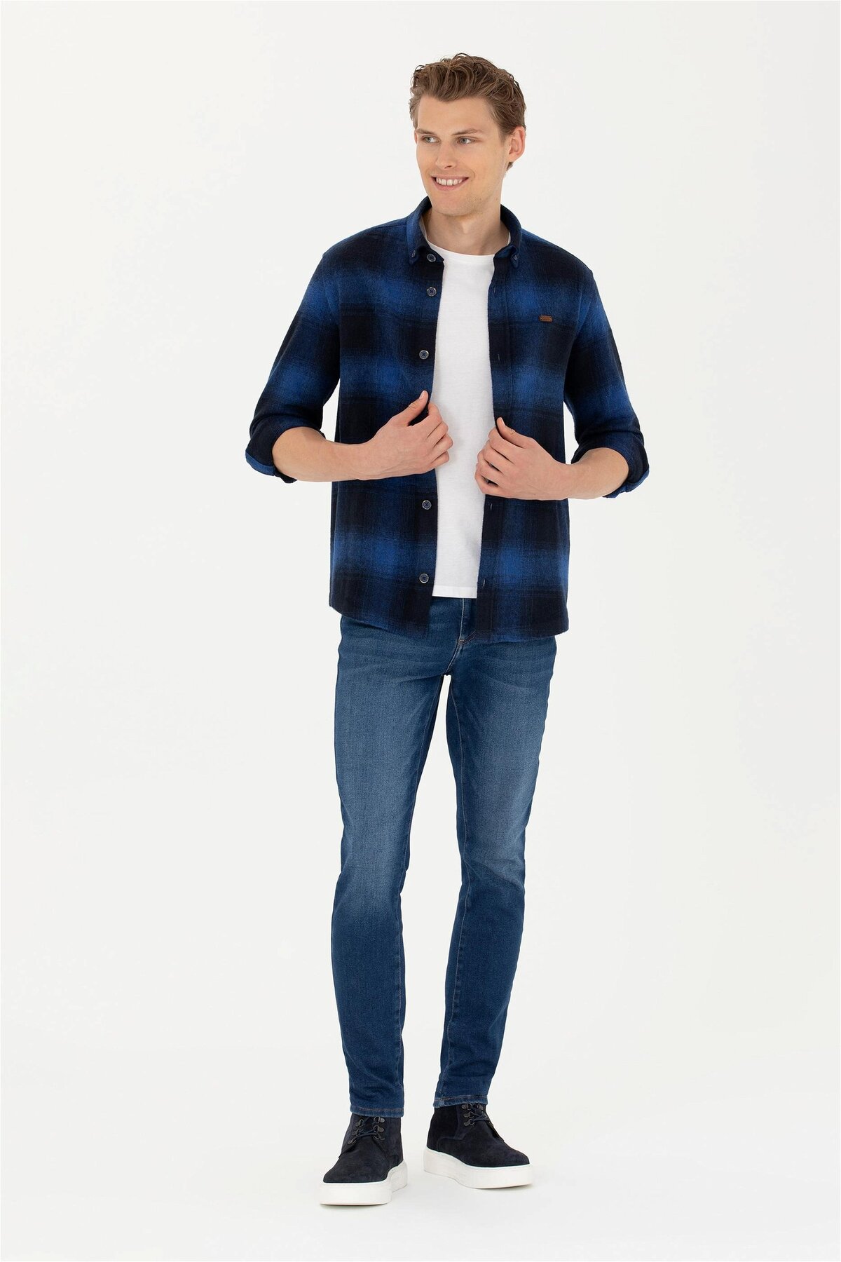 پیراهن یو اس پولو آبی سرمه ای آستین بلند دوختنی | | نمایندگی یو اس پولو