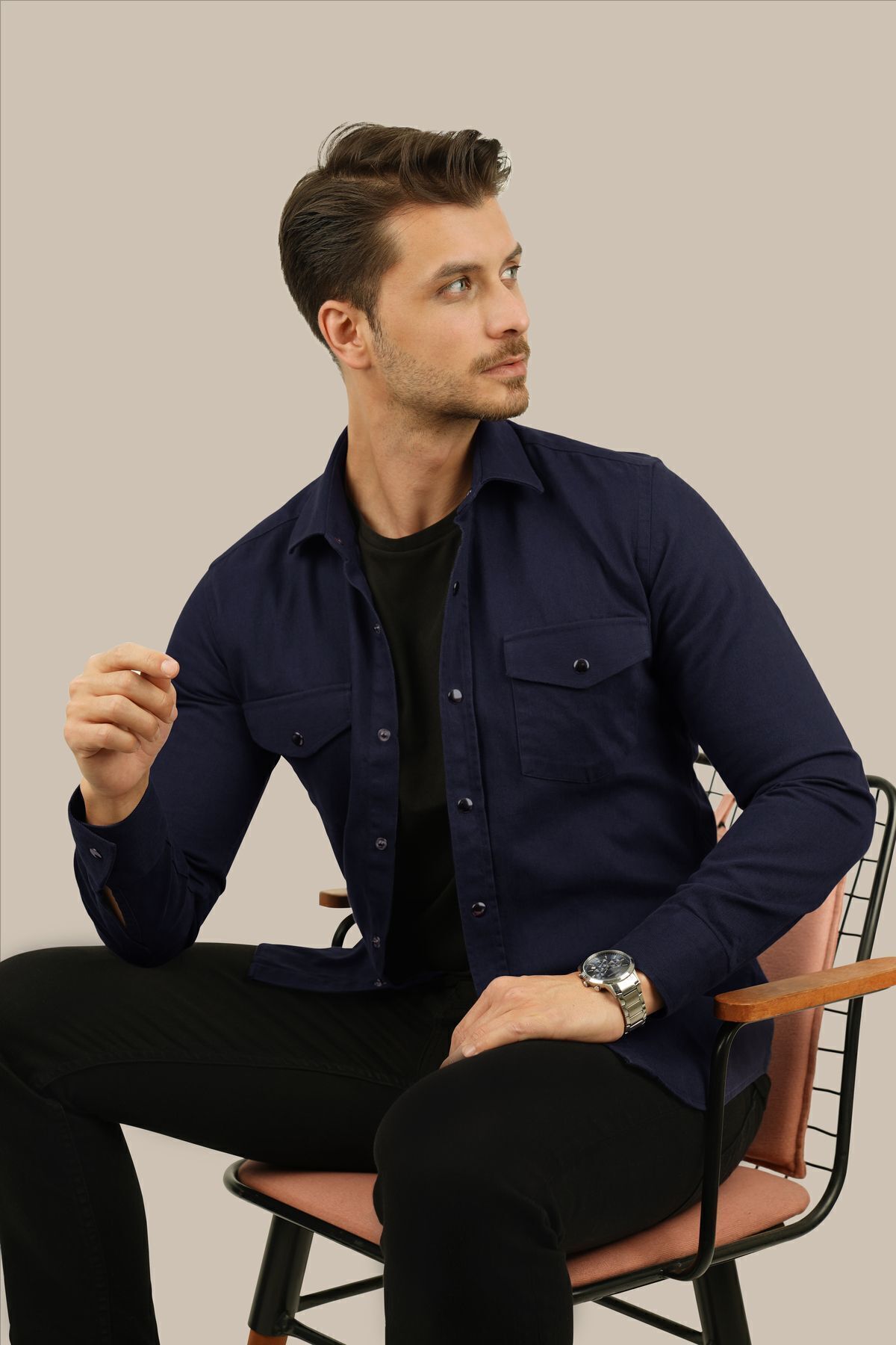 پیراهن مردانه آبی سرمه ای | 1815 Etikmen