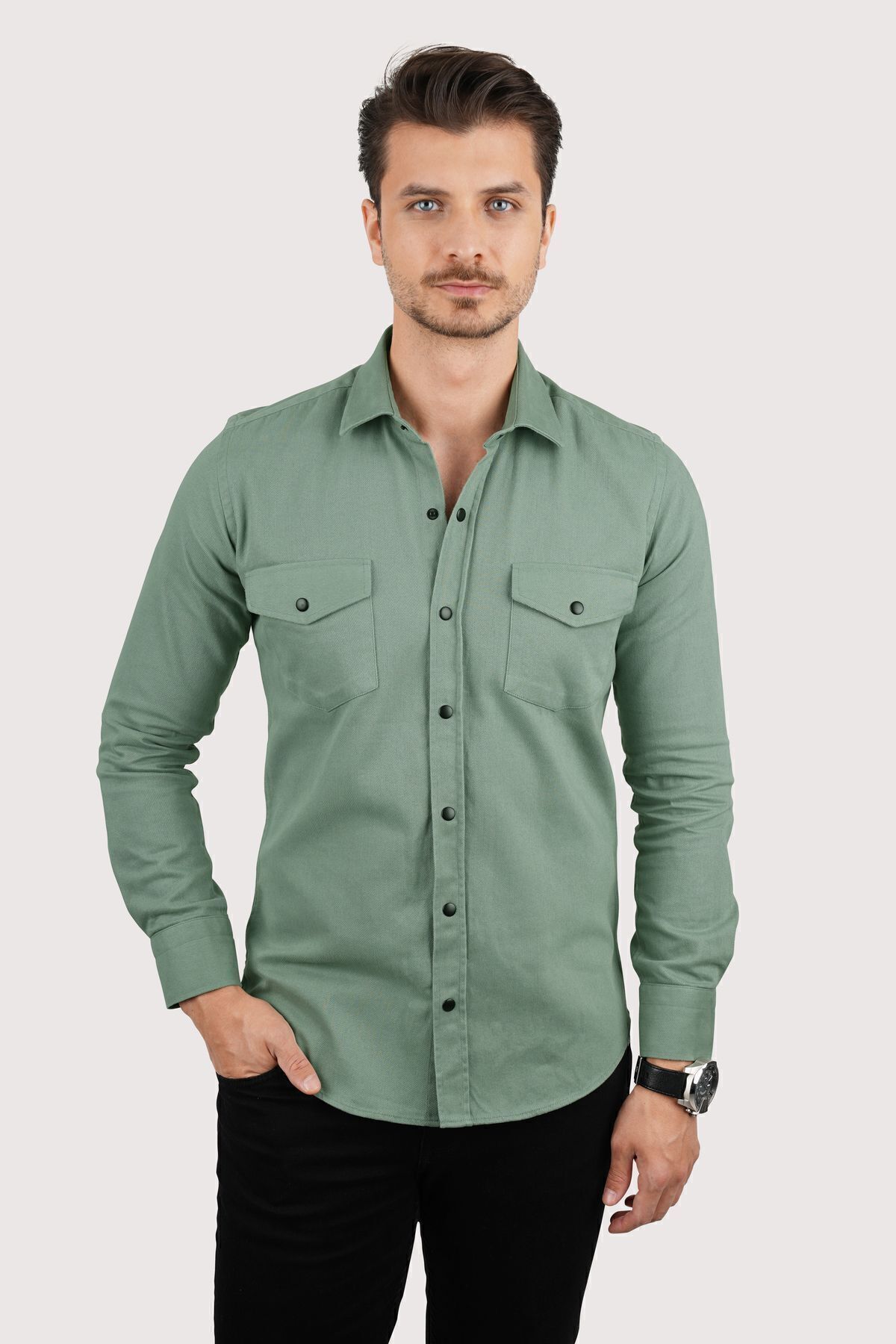 پیراهن مردانه جین اصل اسلیم فیت سبز آبی