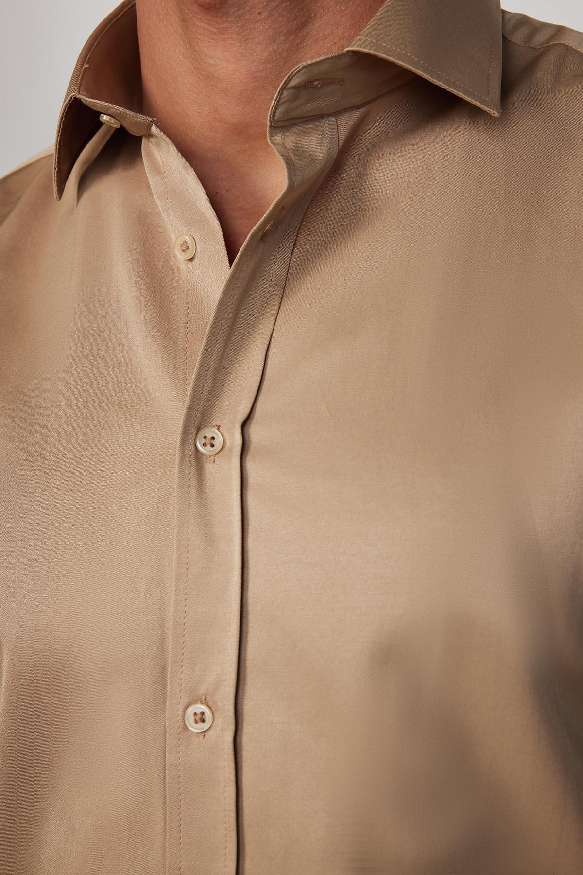 پیراهن مردانه مدرن اسلیم فیت ساده نخی ساتن خاکستری کرم