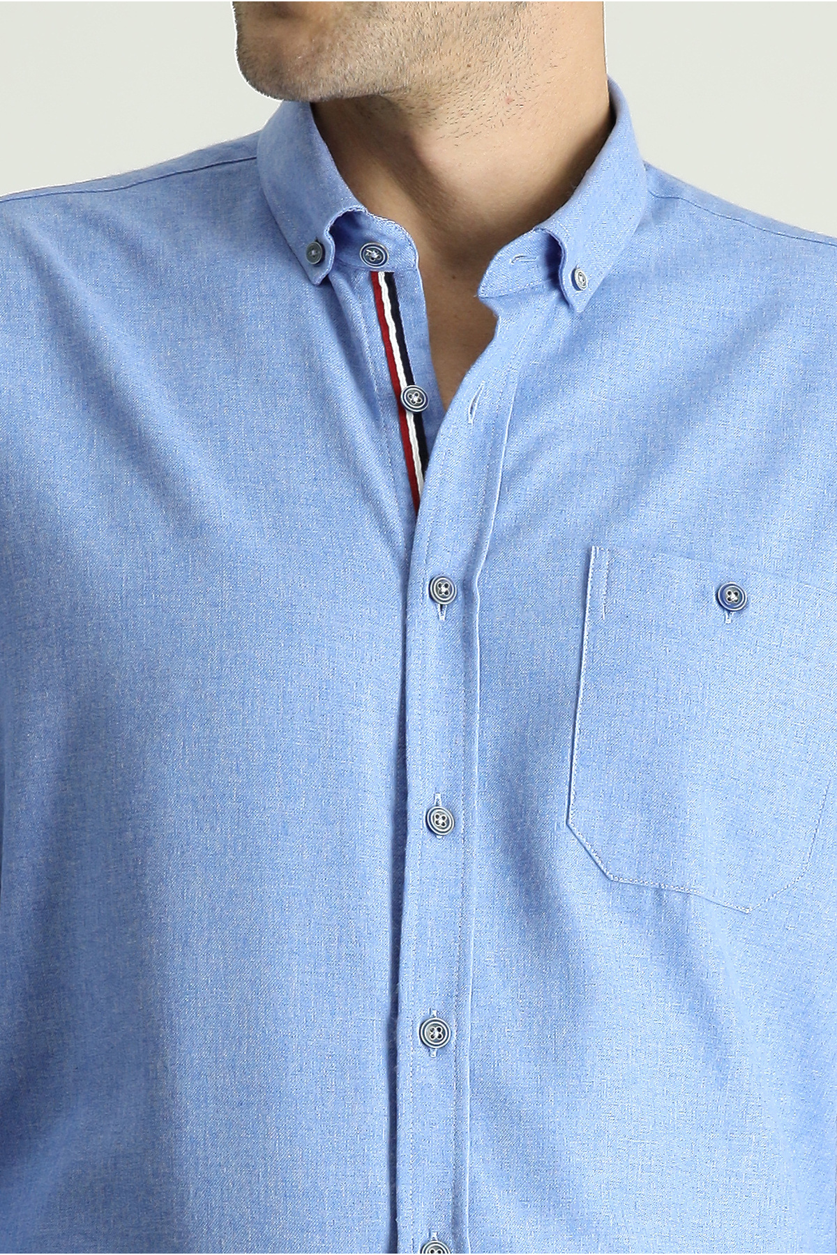 پیراهن آستین بلند نخی یقه دکمهدار طرح چوب جنگلی معمولی